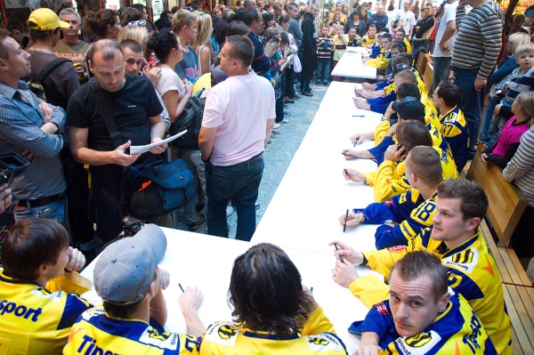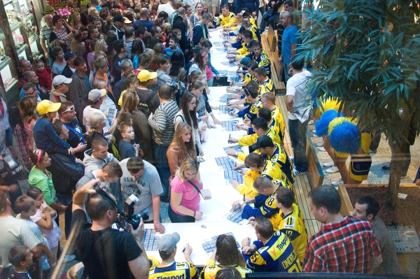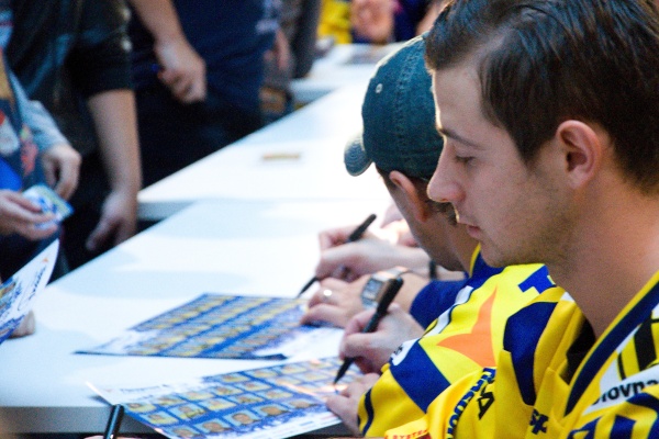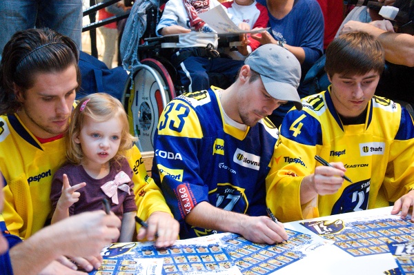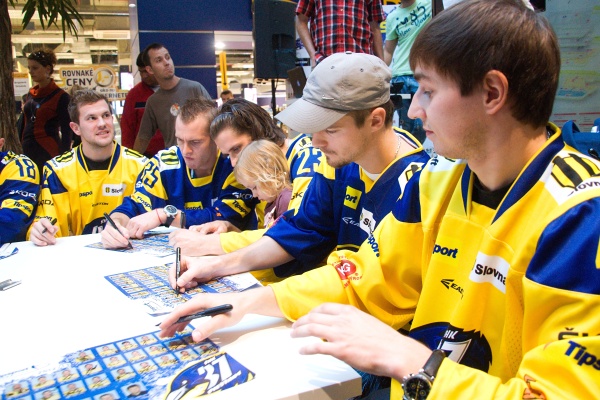 Aupark dnes zaplavili desiatky fanúšikov ŠHK37 Piešťany. Deti, mládež aj dospelí si nechceli nechať ujsť jednu z mála príležitostí stretnúť hokejistov, ktorí naše mesto reprezentujú v najvyššej slovenskej lige. Okrem fotografovania sa s maskotom tímu – modrým Havranom, bol najväčší záujem o fotky s posilou z NHL Tomášom Tatarom. Pozrite sa ako to na autogramiáde vyzeralo: