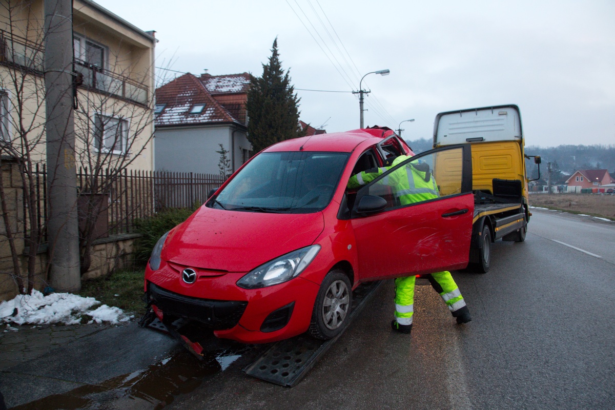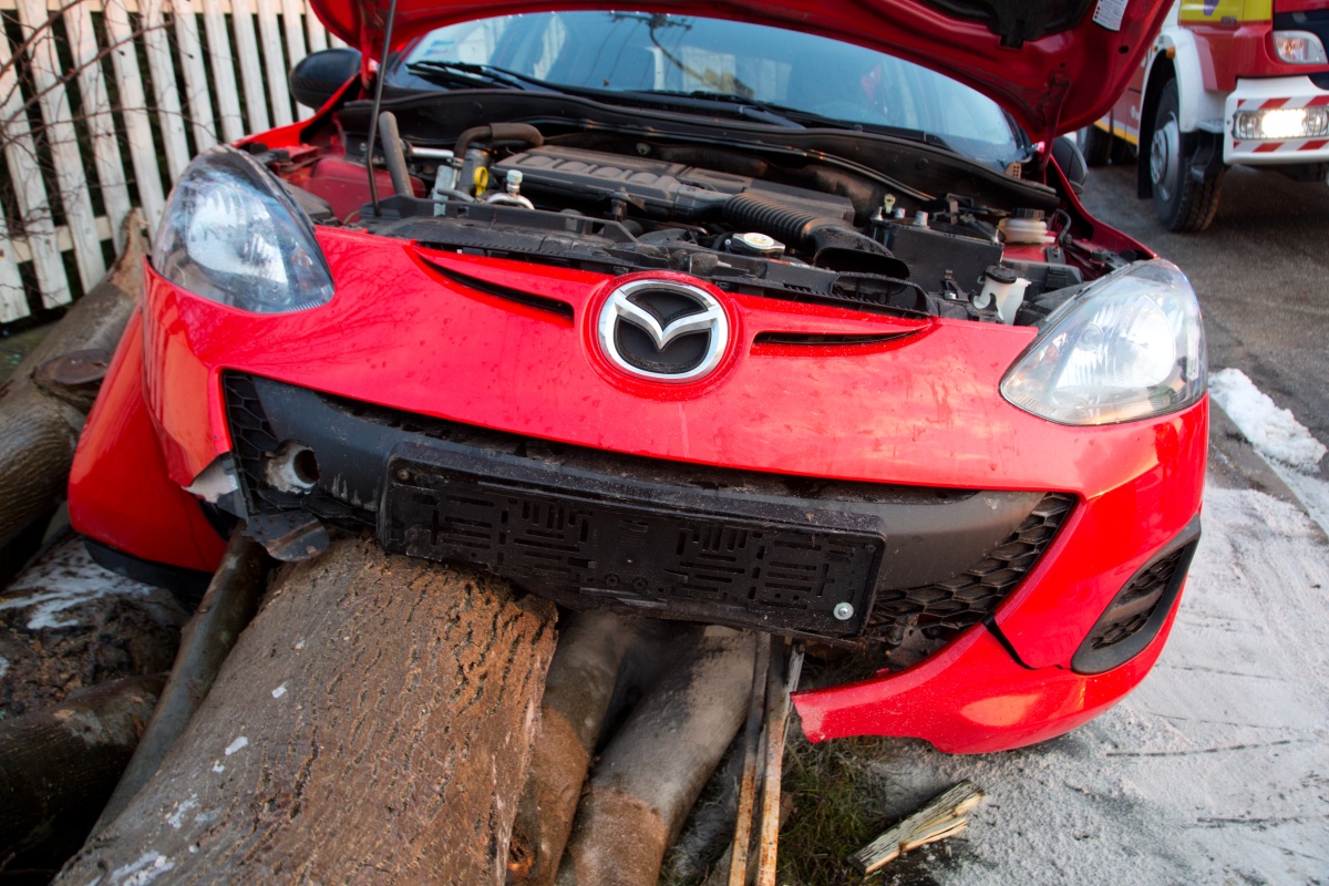 Posádka z Moravian nad Váhom smerovala od centra obce k zákrute. Z dosiaľ nezistených príčin nabúral Ford v plnej rýchlosti do zaparkovanej Mazdy, ktorá patrí miestnym. Náraz odstavené vozidlo posunul asi o pätnásť metrov a napokon nabehlo na naukladané drevené polená. Svedkovia sa vyjadrili, že vinník nehody zaručene nešiel predpísanou rýchlosťou, svedčí o tom aj kompletne zdemolované auto. Podľa majiteľa je súce do šrotu.