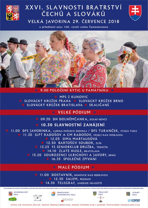 Tohtoročné Slávnosti bratstva Čechov a Slovákov na Veľkej Javorine sú o niečo významnejšie, pretože v tomto roku si pripomíname 100. výročie vzniku Česko-slovenskej republiky. Ak sa vzťahy neudržiavajú, postupne zanikajú, a preto sa so železnou pravidelnosťou už viac ako 170 rokov na vrchu Veľká Javorina stretávajú priatelia, rodiny i susedia spoza hraníc, ktorí chcú naďalej upevňovať česko-moravsko-slovenskú vzájomnosť. Tú nám môže závidieť celý svet.