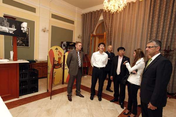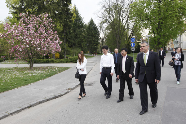 Čínsku delegáciu prijal primátor Remo Cicutto, ktorý im predstavil mesto, jeho históriu a fungovanie. Vysvetlil im, že Piešťany sú okrem kúpeľov, či elektrotechnického priemyslu, mestom kultúry a športu. Predsedovi predstavenstva spoločnosti Wang Lujunovi sa páčilo ticho a pokoj, ktoré ho upútali ako prvé po príchode. Spolu s primátorom sa delegácia prešla po Kukučínovej ulici, pešej zóne, popri Slovane, pozreli si Kursalon a cez Beethovenovu prešli do hotela Sandor Pavillon, kde mali obed a ďalší program. Predsedu predstavenstva Wang Lujuna zaujali počas prehliadky mohutné stromy v parku, doma vraj také nemajú.
