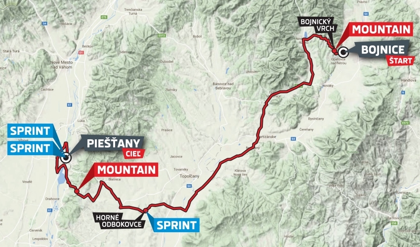Pretekárov dnes čaká 121,9 km s tromi rýchlostnými a dvomi horskými prémiami. Dve rýchlostné prémie sú naplánované v Piešťanoch na Námestí slobody, cez ktoré cyklisti prejdú celkovo tri krát, takže diváci budú mať v priestore cieľa znásobený zážitok. V súboji o modrý bodkovaný dres najlepšieho šprintéra delí Fortina a Sisra len jediný bod, takže motivácia stať sa víťazom tejto klasifikácie bude veľká.  Rovnako na čele celkovej klasifikácie má Talian Mauro Finetto náskok pred druhým Ukrajincom Vitalij Butsom iba sedemsekundový náskok, takže stále je o čo bojovať.