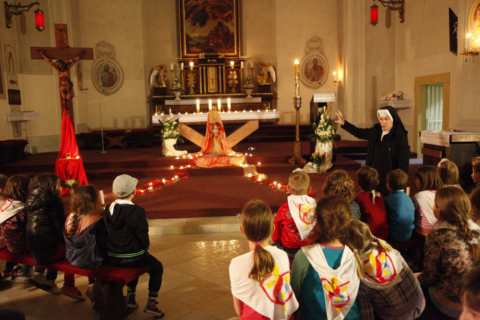 Veľký zážitok mali deti predovšetkým z interaktívna adorácie, ktorú pripravili školské sestry De Notre Dame. Kostol pri tejto príležitosti zaplavilo svetlo sviečok, dym kadidla a prosby a modlitby detí.