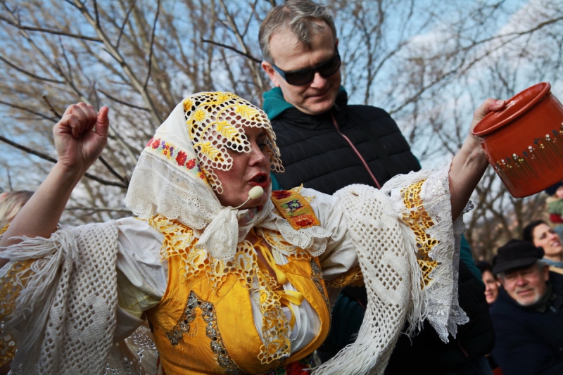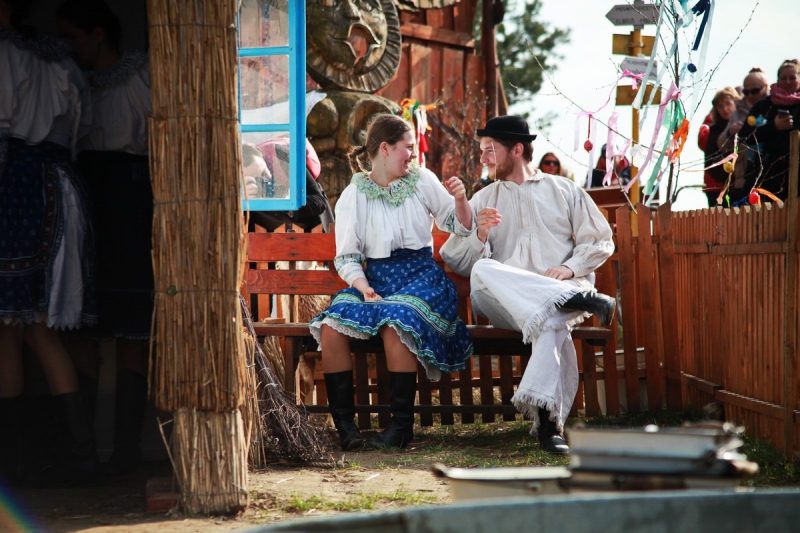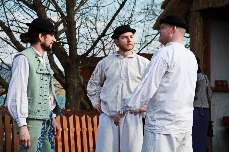 „Uvoľnite sa, usmejte sa a pripravte sa na to, že vám ukážeme väčšinu veľkonočných zvykov, ktoré sme zozbierali z rôznych kútov Slovenska, z rôznych materiálov a prameňov. Tešíme sa, že vám ich v našom programe a vďaka tanečníkom a hudobníkom, ale hlavne nehercov môžeme predstaviť v hranom pásme. Tento rok sme si prizvali do scénky aj živé zvieratá, takže verím, že budú spolupracovať,“ uviedla predstavenie Katarína Agnetová z Folklórneho súboru Žito.