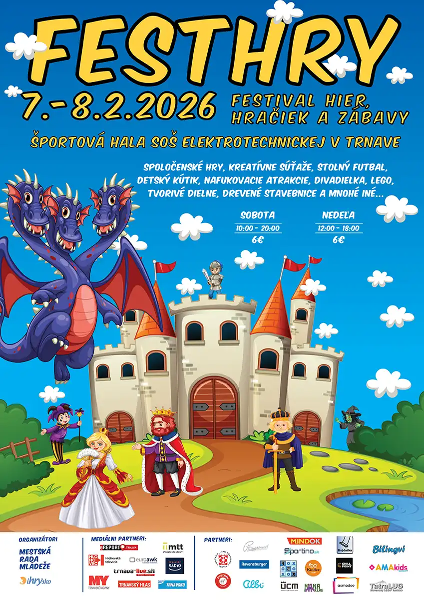 Športová hala SOŠ elektrotechnickej v Trnave sa počas víkendu 7. – 8. februára 2026 premení na kráľovstvo plné hier, fantázie a rodinnej zábavy. FestHry – festival hier, hračiek a zábavy ponúkne bohatý program pre deti, dospelých a celé rodiny.