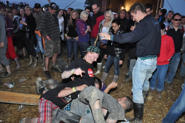 Niektorí dodávatelia a účinkujúci sa do areálu nevedeli dostať a premočená pôda bola príčinou straty miest na parkovanie a stanovanie. Bahno v priestoroch pre publikum odstraňovali pomocou slamy. Viacerí návštevníci sa na takéto podmienky sťažovali, iným to nevadilo. Väčšina si už druhý deň festivalu poriadne užila, pretože po daždi svietilo horúce slnko.