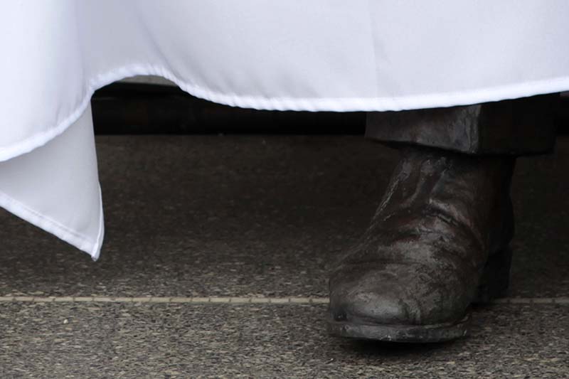 Sedí tam, kde sedával, uprostred Kolonádového mosta a hľadí na kúpele. Hoci ako budovateľ kúpeľov mal napokon vstup na Kúpeľný ostrov zakázaný, stále mal na tvári jemný úsmev a radosť v srdci z pomoci druhým, aj napriek ťažkému životu. Takto si ho pamätajú ešte i niektorí Piešťanci.