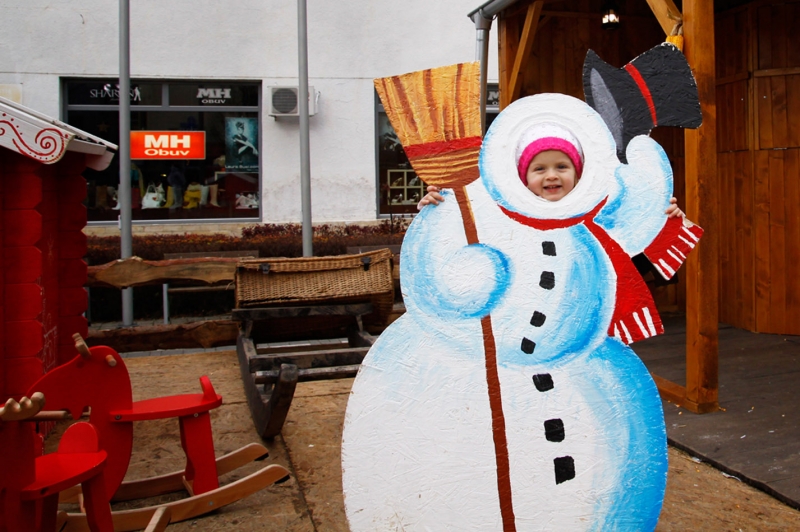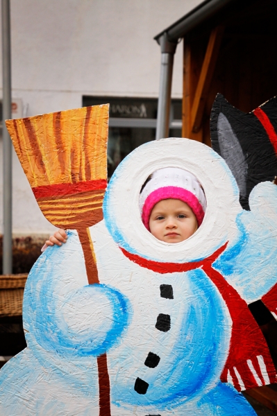 Malí výtvarníci ešte v novembri dostali z OSB dosiek vyrezané postavy Mikuláša, medvedíka a snehuliaka, ktorým mali farbami vtisnúť konečnú podobizeň. Úlohy sa zhostili výborne a tak námestie zdobili zaujímavé „fotosochy“, ktorým ste mohli prepožičať na chvíľu svoju tvár. Ako vidieť aj z fotografií, fotenie si užívali deti aj dospelí.