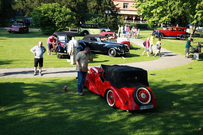 14:00 Príjazd a výstava historických závodných áut, motocyklov a špeciálov na Kúpeľný ostrov, Výstava historických traktorov a historických stabilných motorov