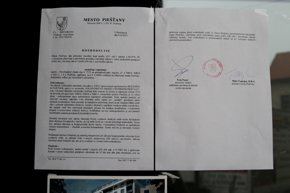 Praskliny v niektorých častiach stavby vyzerajú naozaj hrozivo a motivácia primátora Miloša Tamajku a Ivana Pauera k nariadeniu vypratania stavby sa zdá byť naozaj odôvodnená.