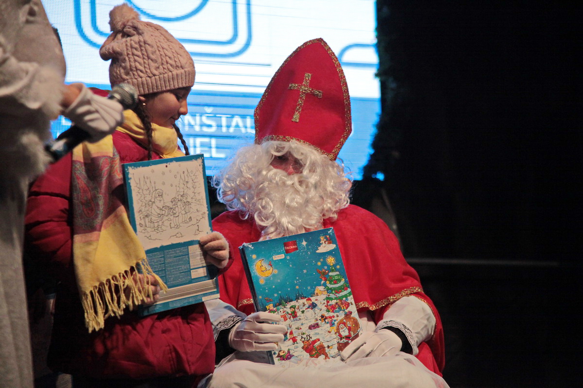 Námestie slobody navštívil v stredu 6. decembra Mikuláš, anjel a čert, ktorí potešil nielen najmenších. Na pódiu sa vystriedali desiatky detí, ich úlohou bolo zarecitovať básničku alebo zaspievať pieseň, sladkou odmenou im bol adventný kalendár. Na tvárach prítomných rodičov a bolo vidno hrdosť, radosť i dojatie, pre väčšinu vystupujúcich totiž pobyt na javisku pred publikom premiérový. Program vianočných trhov bude pokračovať v piatok i počas nadchádzajúceho víkendu.