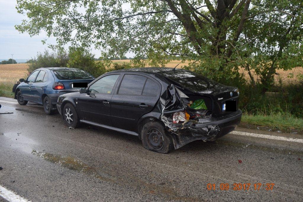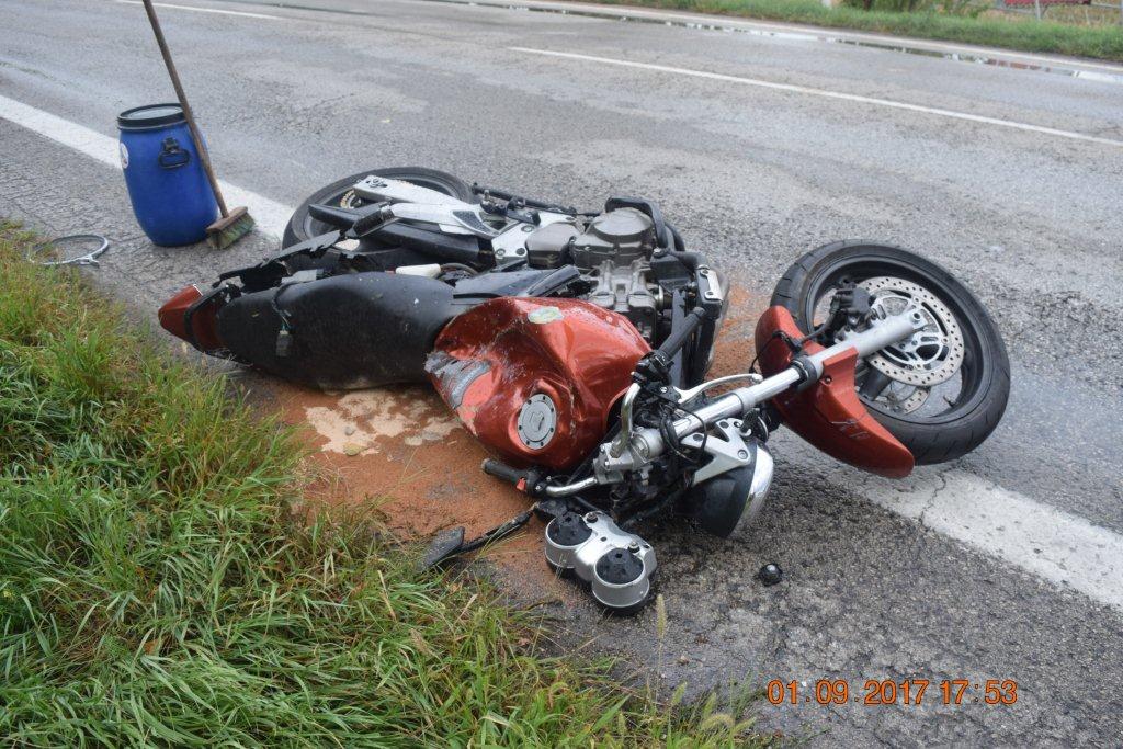 Polícia vyšetruje okolnosti dopravnej nehody, ktorá sa stala v piatok 1. septembra o 16.50 hodine na ceste medzi Trnavou a Bučanmi. 45-ročný vodič z obce Šelpice viedol motocykel Honda CB 600 F Hornet v smere od obce Bučany na Trnavu. Pri predbiehaní auta dostal na rovnom úseku cesty, na mokrej vozovke, šmyk. Spadol aj s motocyklom na zem a narazil do oproti idúceho Ranaultu Mégane. Po náraze odhodilo motocykel do Oplu Zafira idúceho na Trnavu. Vzápätí došlo k zrážke medzi ďalšími tromi autami. Pri nehode vodič motocykla utrpel ťažké zranenia, ktorým po prevoze do nemocnice podľahol. V Škode Octavia sa ľahko zranila spolujazdkyňa, k ďalším zraneniam nedošlo.
