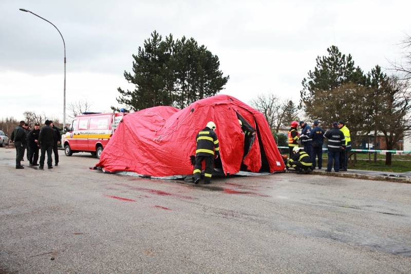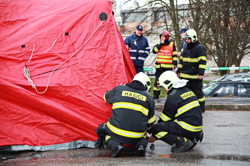 Prvá na miesto zásahu prišla za hluku sirén polícia a krátko po nej dorazili k letisku hasiči i záchranári. Príslušníci policajného zboru začali hneď po príjazde usmerňovať dopravu áut, prichádzajúcich k letisku. Úlohou hasičov zase bolo rozložiť stan krízového riadenia, v ktorom zástupcovia jednotlivých zložiek integrovaného záchranného systému jednali o ďalšom postupe. Do akcie sa zapojili aj policajní psovodi. Viac v našom fotoreporte, za policajnú pásku nás ale ako pri reálnom zásahu nepustili.