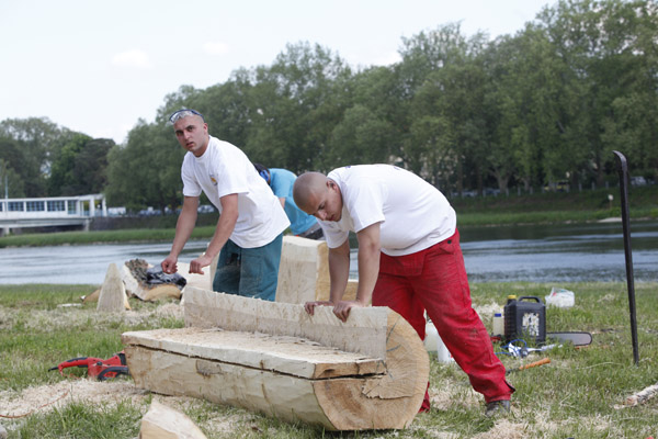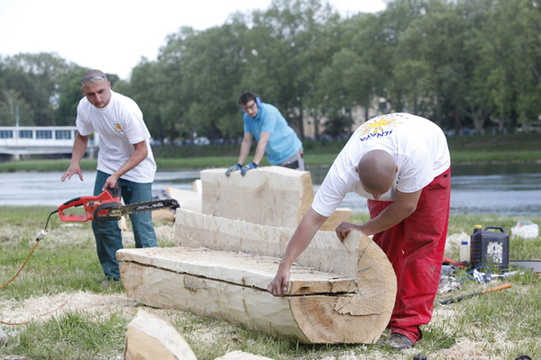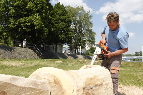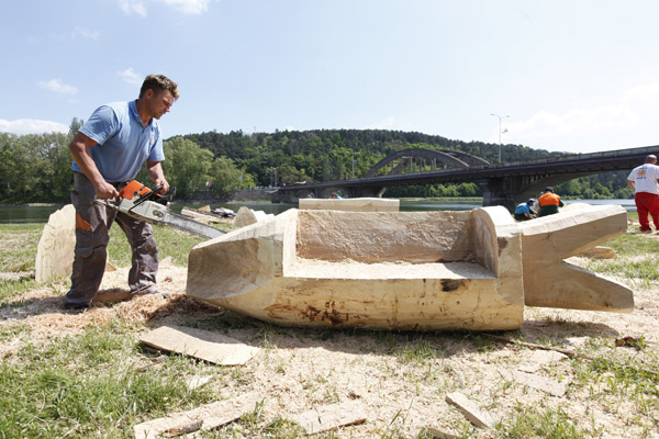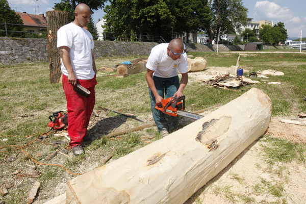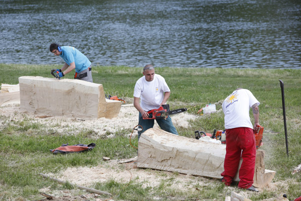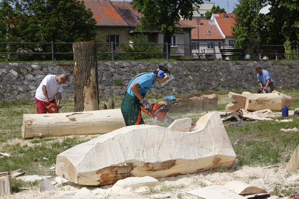 Zvuk motorových píl sa rozliehal v piatok 13. mája nábrežím Váhu pri Krajinskom moste v Piešťanoch. Nie, nepadali stromy, to sa len šestica rezbárov pustila do výroby lavičiek v rámci rezbárskeho sympózia Sĺňavské slnko (13.-15.5.). Akcie sa zúčastňujú známi rezbári, ale aj študenti, ktorí by sa radi niečo priučili.