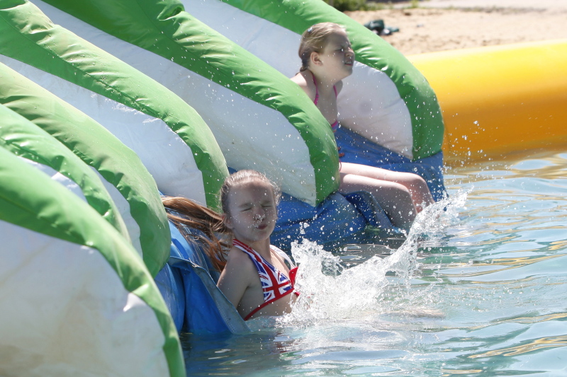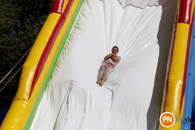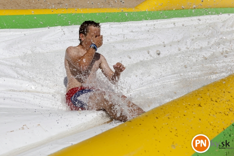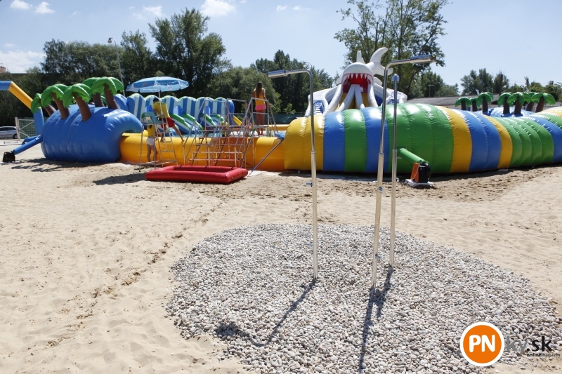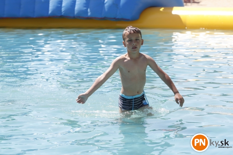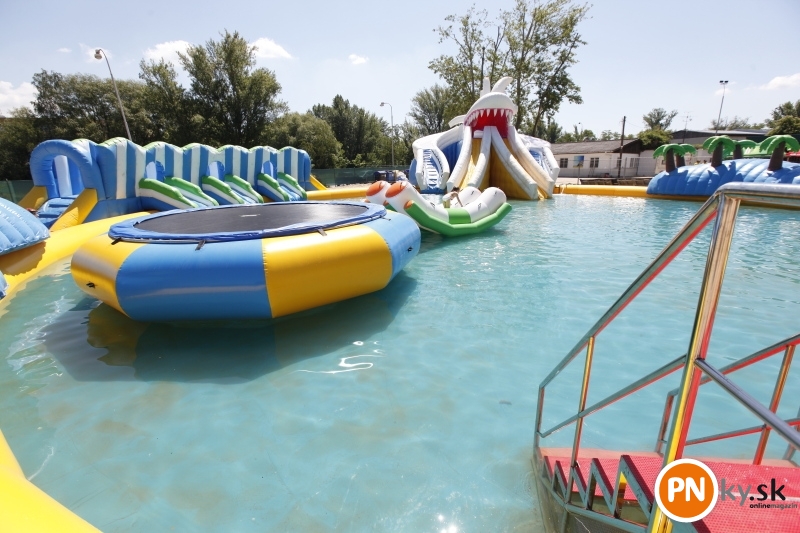 Nafukovací aquapark otvorený – tí čo prišli prví, ho mali celý pre seba