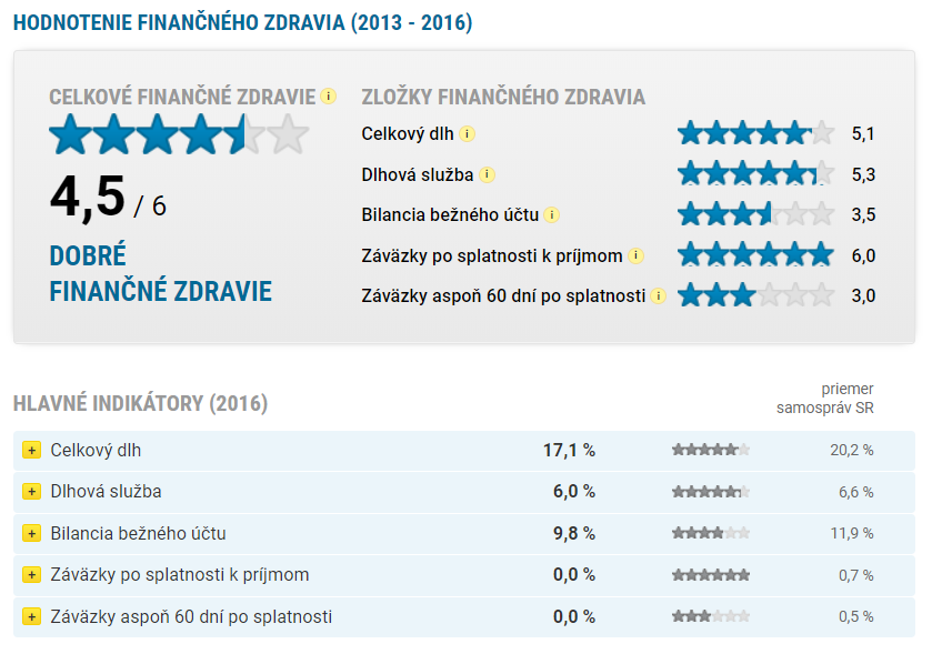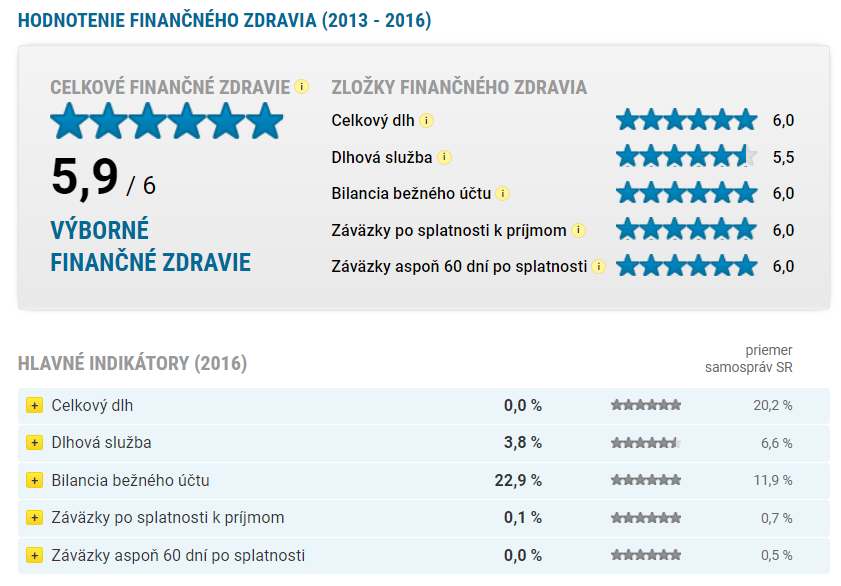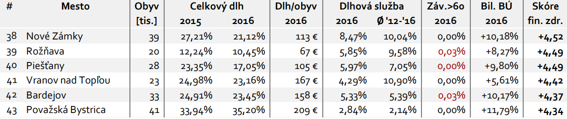 Pozíciu miest s najlepším finančným zdravím potvrdili ku koncu roku 2016 Nové Mesto nad Váhom a Dubnica nad Váhom. Naopak, spomedzi veľkých miest sú na tom najhoršie Senica a Bratislava, ktorú ťahá dole magistrát a mestská časť Devín.