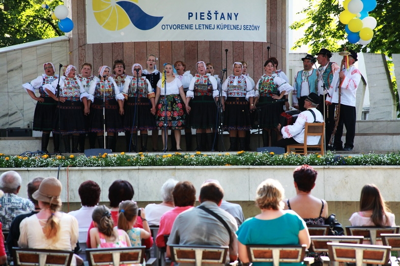 Hudobný pavilón v mestskom parku ožil v nedeľu popoludní podujatím s názvom Národopisné slávnosti. Vystúpilo na ňom dovedna šesť folklórnych zoskupení prezentujúcich tradičné spevy, tance a ľudovú kultúru. K videniu bola tiež výstava fotografií zo zbierky pohľadníc Alexandra Urminského a návštevníci mohli ochutnať kuchyňu našich predkov v piešťanskom domčeku.
