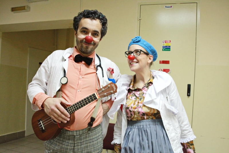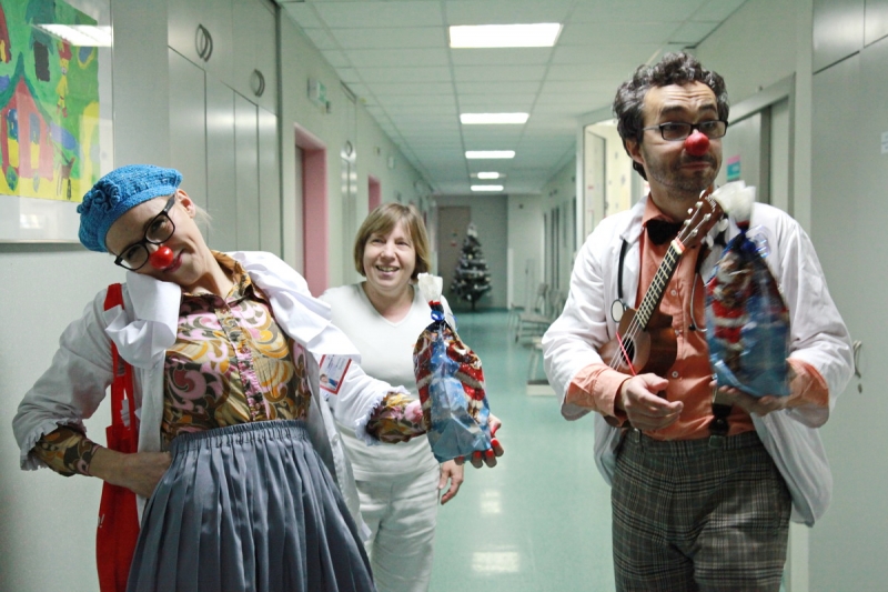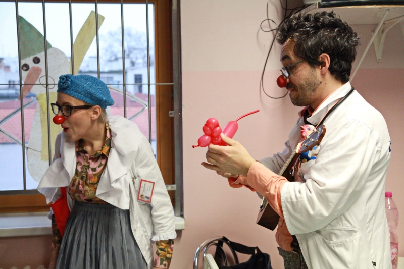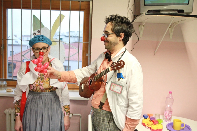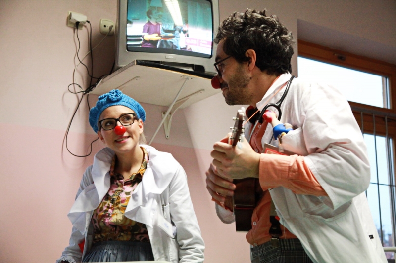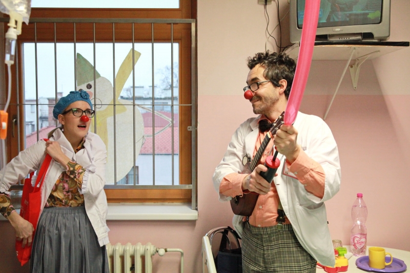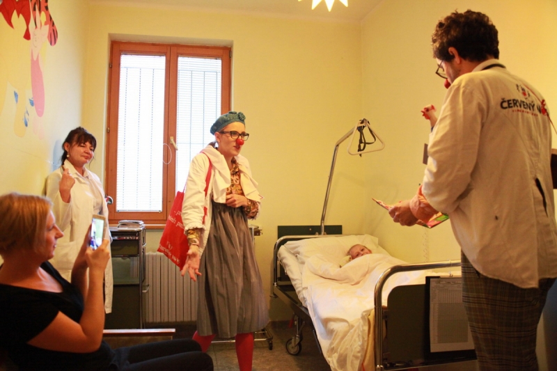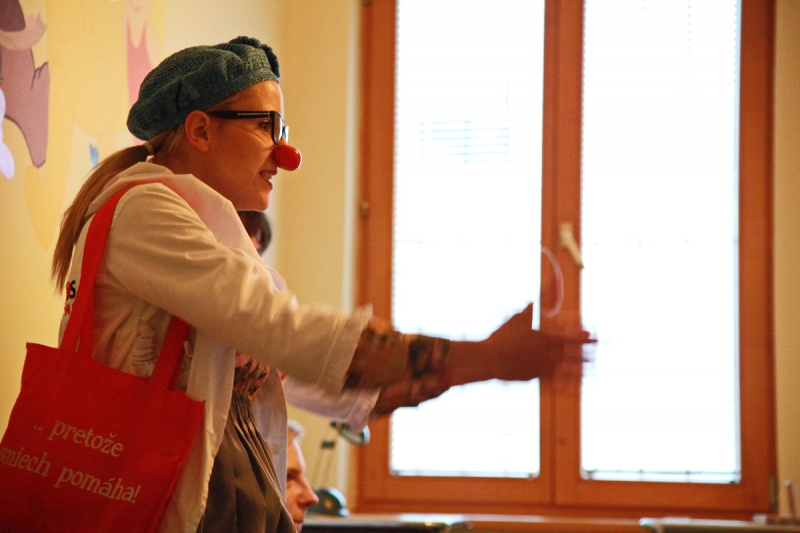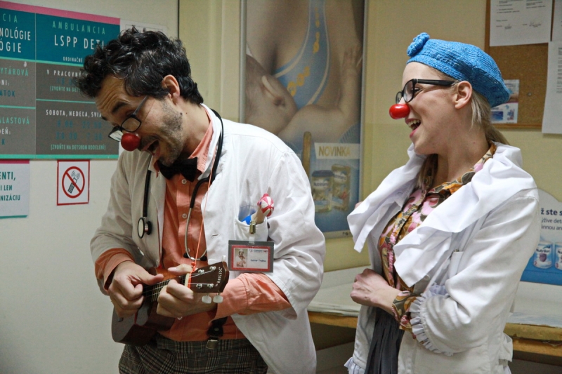 Piešťanská Nemocnica Alexandra Wintera zažila včera 8. decembra návštevu netradičnej dvojice lekárov s červenými nosmi. Klauni doktor Trúbka a sestrička Šťastná urobili sústredenú vizitu po izbách detských pacientov, kde vo veľkých dávkach rozdávali radosť, dobrú náladu a smiech. Terapia v mnohých prípadoch zabrala a aj vážne diagnózy ako zakusnutie do paplónu či parádna tetka boli bez problémov vyliečené. Návšteva bola síce plná improvizovaného humoru, ale do nemocnice priniesla dvojica klaunov hlavne úžasnú vzpruhu i psychickú podporu pre chorých a aj personál.