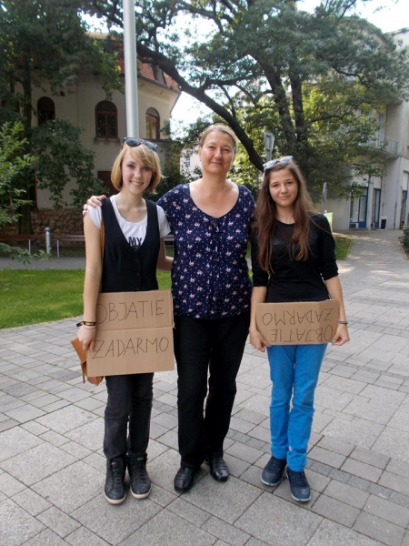 Slnečné sobotňajšie popoludnie prilákalo do mesta množstvo ľudí, a hoci nie všetci mali o fyzický kontakt záujem, pozitívna energia, ktorú skupinka mladých, usmiatych dievčat a chlapcov naozaj šírila do okolia, oslovených obvykle presvedčila. Počas približne troch hodín dievčatá a chalani objali približne dve stovky okoloidúcich.