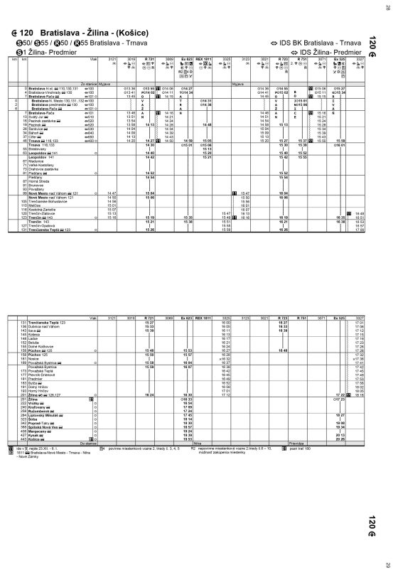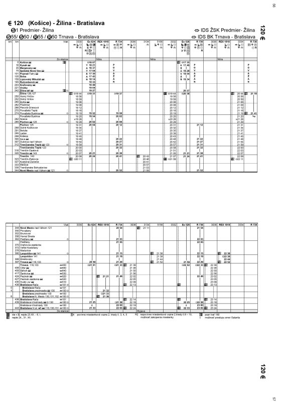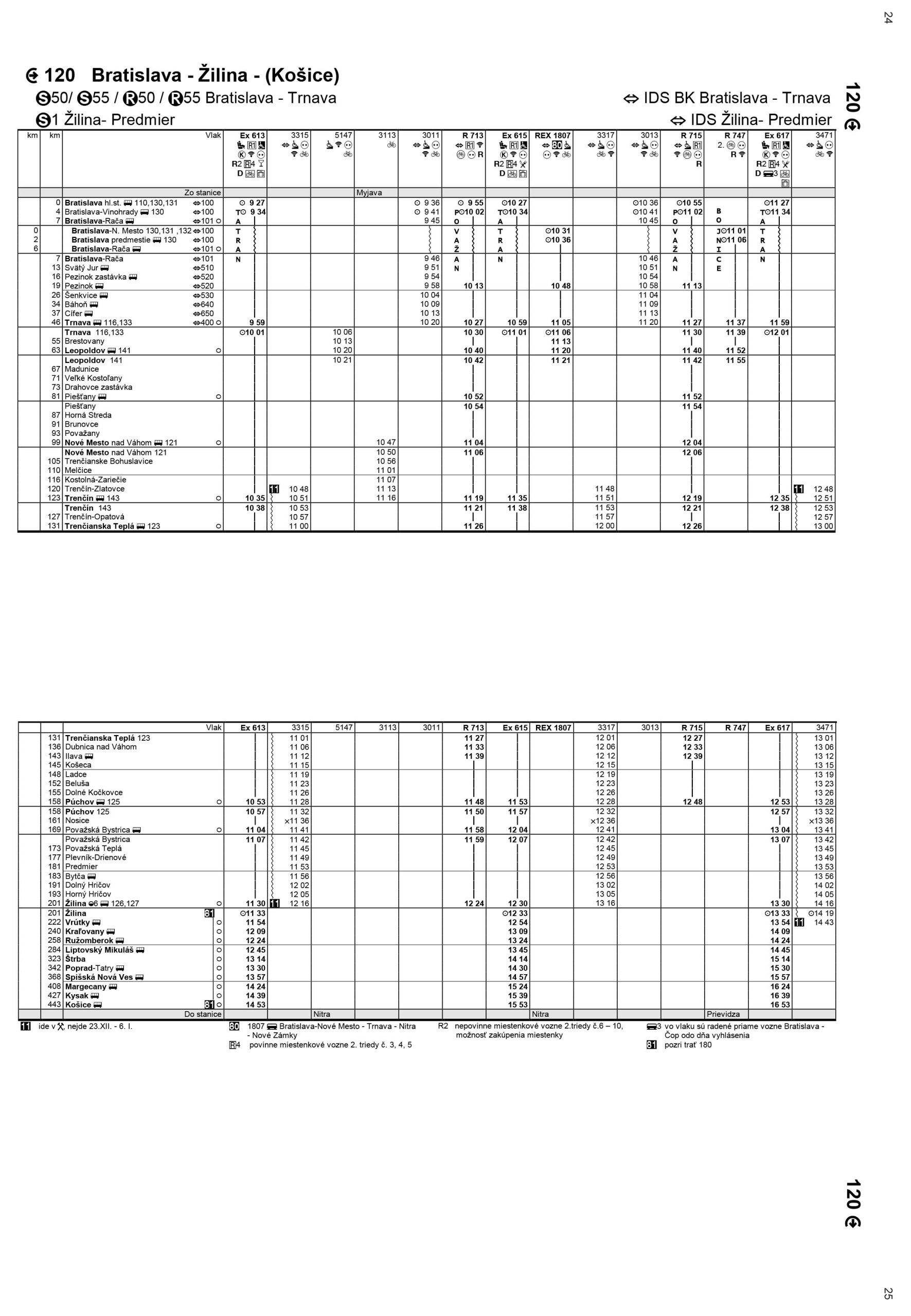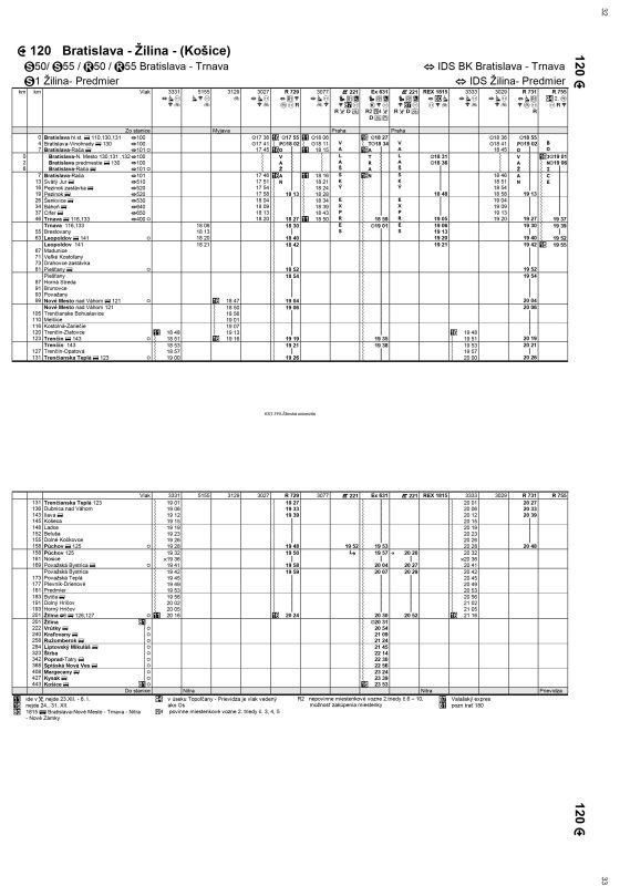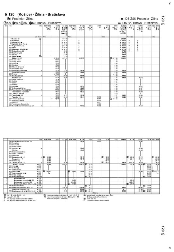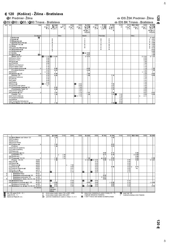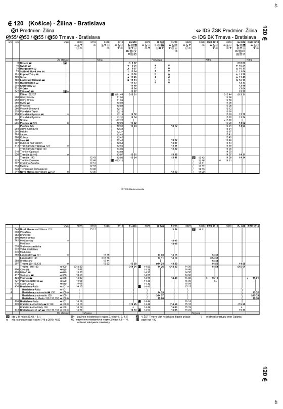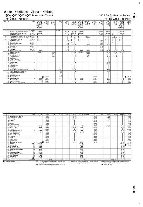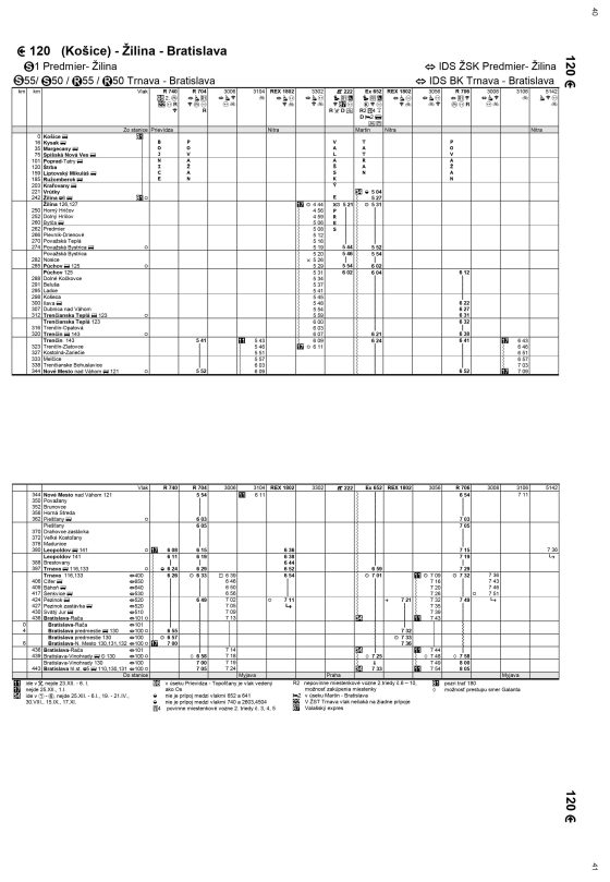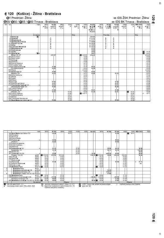 Grafikon vlakového spojenia na trati Bratislava – Košice pre rok 2024/2025