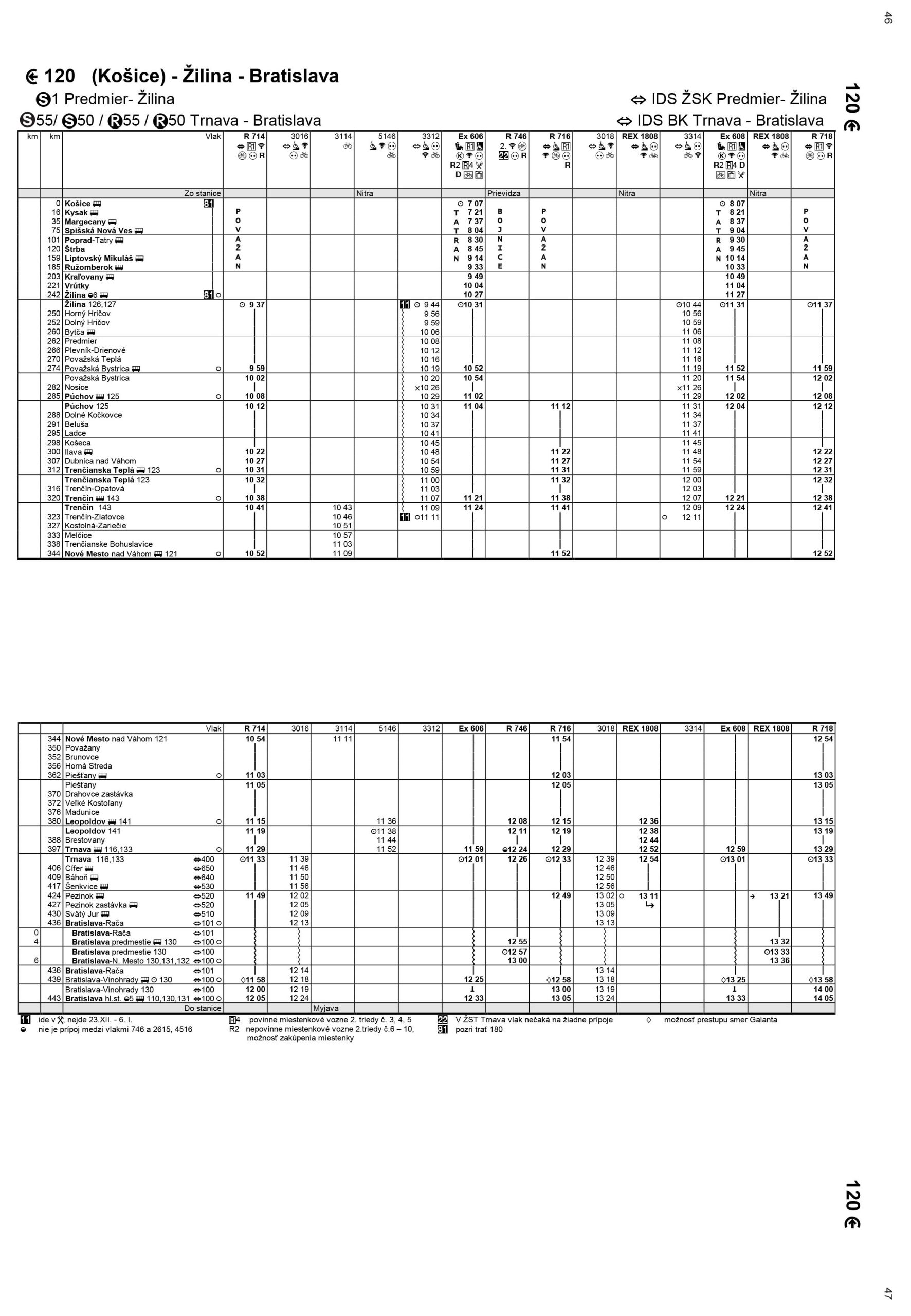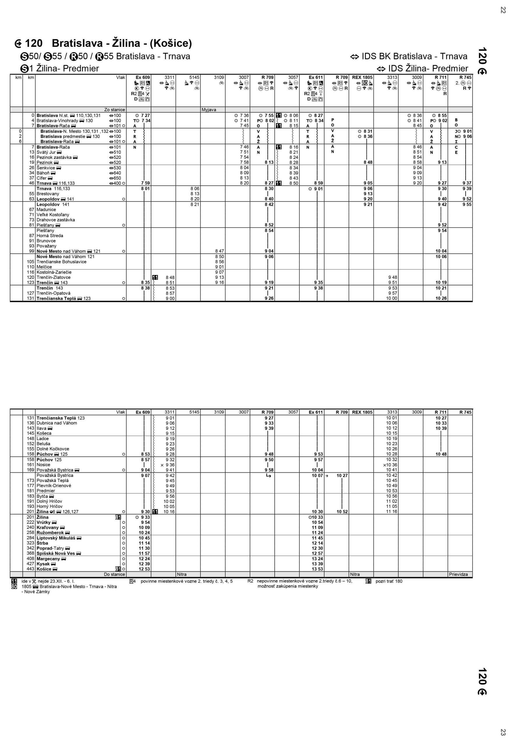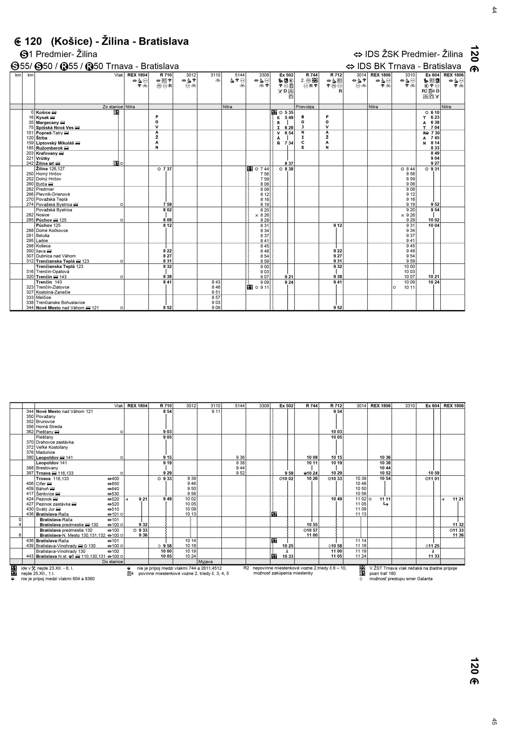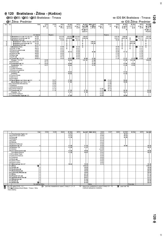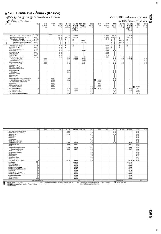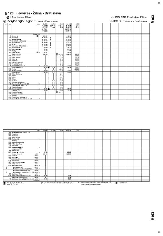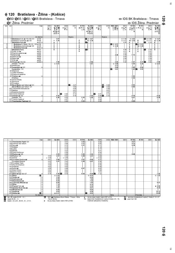 Grafikon vlakového spojenia na trati Bratislava – Košice pre rok 2024/2025
