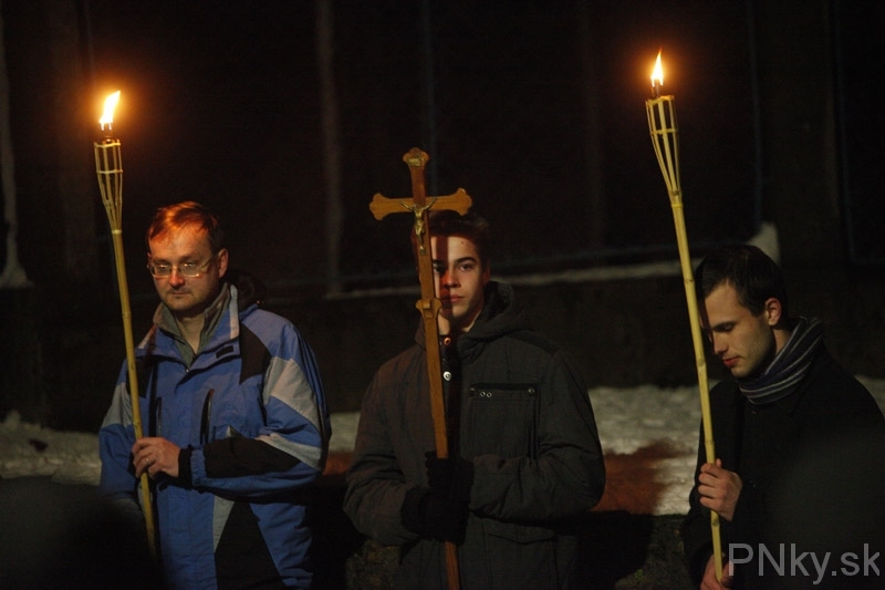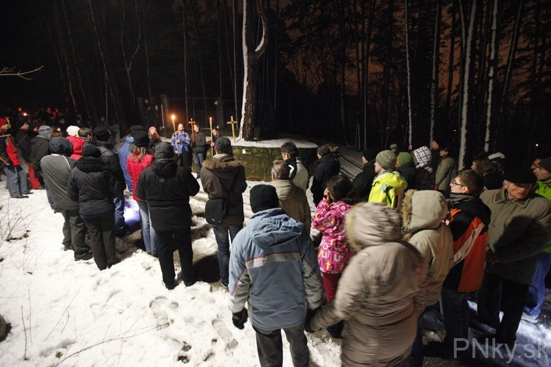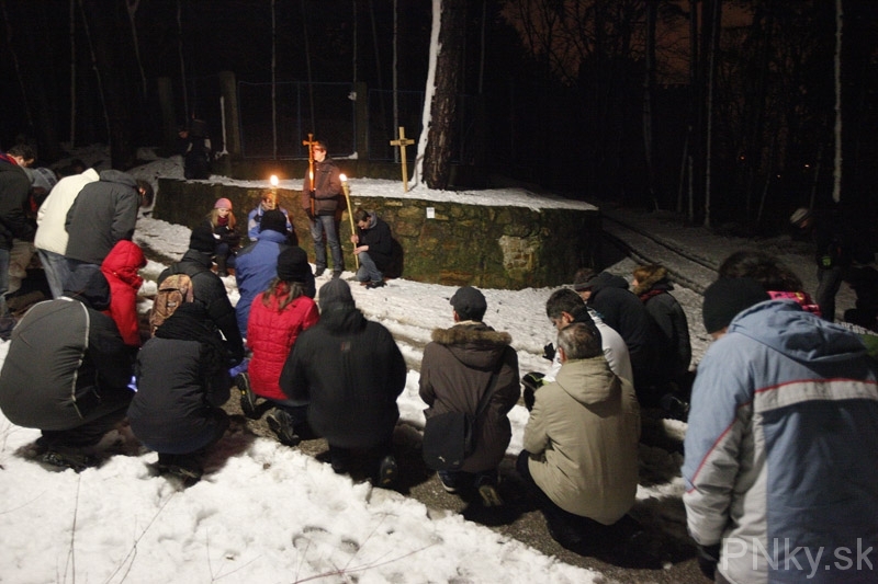 Vŕzgajúci sneh, šmykľavé schody, ani zima neodradili niekoľko desiatok veriacich od účasti na krížovej ceste na Červenej veži, ktorá sa konala na Veľký piatok. Deti, mladí, ale i skôr narodení, kráčali tichom lesoparku a rozjímali nad štrnástimi zastaveniami pripomínajúcimi udalosti súvisiace so smrťou Ježiša Krista.