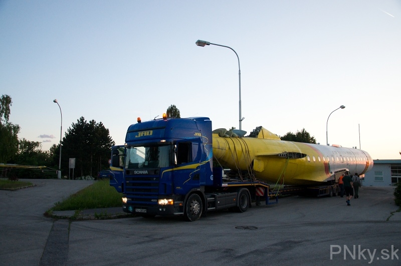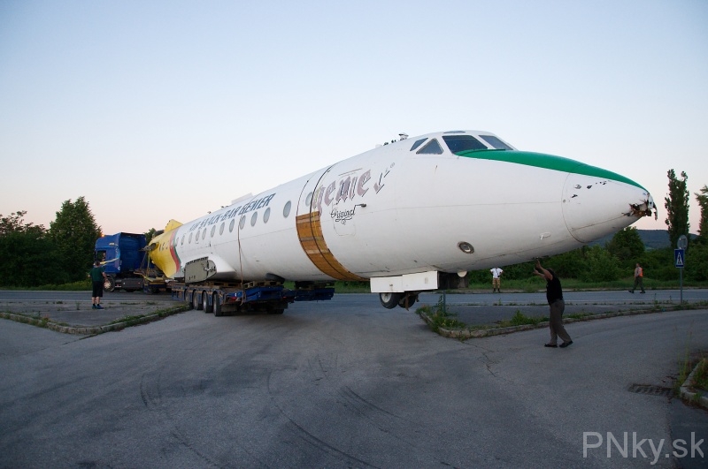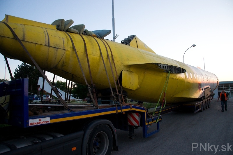 Dominanta vstupu do Piešťan smerom z Hornej Stredy definitívne zmizla zo svojho miesta 14. mája krátko pred 20.30 h. Po odmontovaní krídel ju naložili na ťahač určený pre nadrozmerné náklady. Dvojmotorový prúdový stroj sovietskej výroby sa vydal na svoju poslednú cestu.