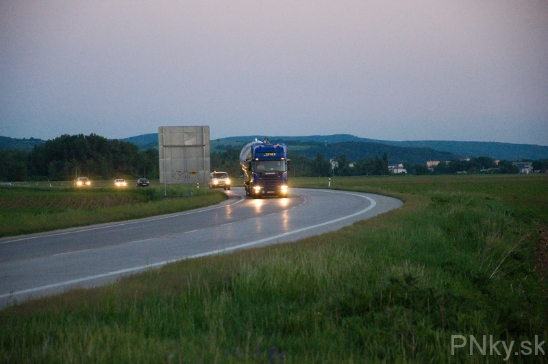Jeho odchod skomplikovala iba dopravná značka, ktorá zavadzala pri výjazde. S trupom dlhým vyše 30 metrov sa šóferovi ťahača nepodarilo na prvý raz vytočiť, preto musel cúvať. Dopravu to skomplikovalo iba na niekoľko minút, trpezliví šoféri si so záujmom pozreli netradičné divadlo.