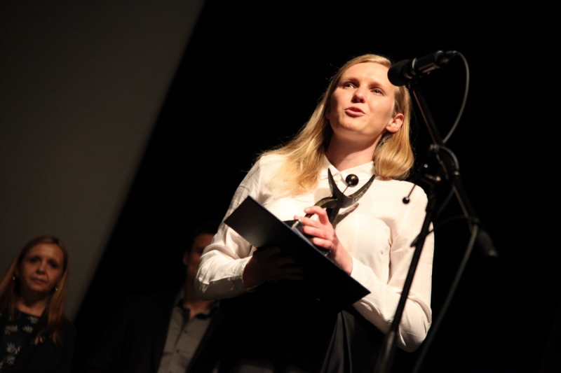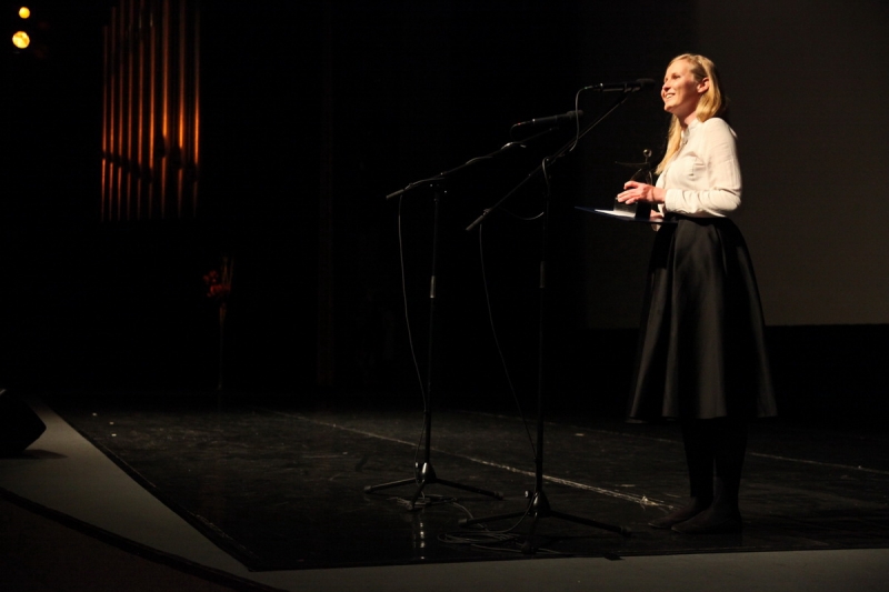 Cenu za Kultúrny počin roka si odniesla Lívia Gažová z občianskeho združenia Centrum architektúry, ktorá iniciovala v spolupráci s WO|V|EN a študentami vytvorenie dreveného objektu UWO počas Workshopu [1:1].