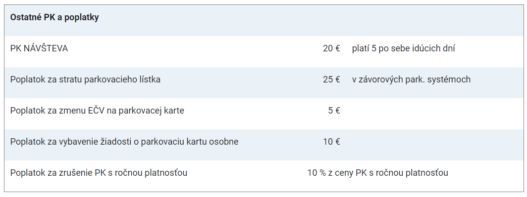 Parkovacia karta NÁVŠTEVA je k dispozícii komukoľvek. Nie je s ňou možné parkovať v pásme A. Je možné s ňou parkovať na parkovisku s automatickým závorovým systémom na Nálepkovej ulici.
