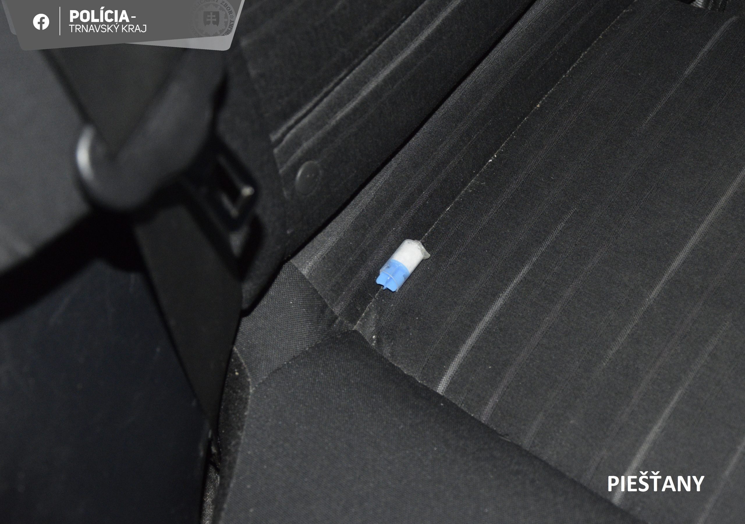 „Revírom“ 34 ročnej ženy malo byť mesto Piešťany a jeho okolie, kde mala svojim zákazníkom predávať pervitín. Policajti ju zadržali vo štvrtok podvečer v obci neďaleko Hlohovca. Po tom, ako ju posadili do policajného auta, sa mala chcieť „zbaviť“ dôkazov a tak mala zahodiť zatavenú striekačku na sedadlo. Policajti si drogy samozrejme všimli a na mieste ich zaistili. Podľa výsledkov expertízy bolo v striekačke približne 6 dávok metamfetamínu.