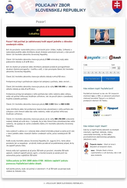 „Vo viacerých krajinách a v poslednom období aj na Slovensku sa prostredníctvom internetu šíri trojský kôň (kód ransomware), ktorý napáda počítače. Po aktivácii upozorní užívateľa, že jeho počítač zablokovala polícia. Údajne z dôvodu porušenia autorských práv, šírenia detskej pornografie, šírenia spamu a podobne. Súčasťou je aj požiadavka na zaplatenie pokuty. Pozor, polícia takýmto spôsobom v žiadnom prípade nekoná,“ upozornil hovorca Policajného zboru SR Michal Slivka.