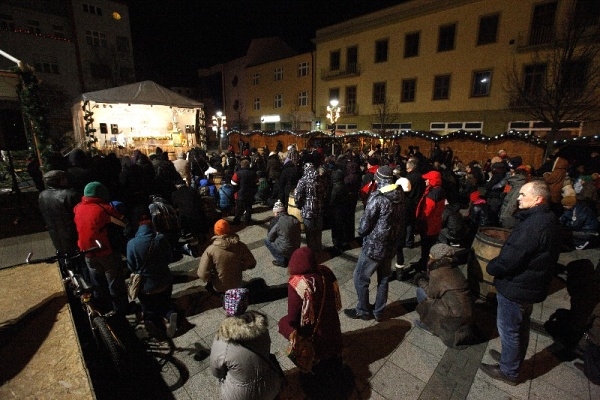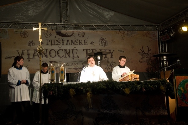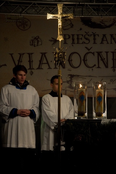Vyjdite z chrámov a choďte medzi ľudí, odporúča veriacim nový pápež František. Farnosť sv. Cyrila a Metoda v Piešťanoch jeho odporúčanie splnila. Polnočná svätá omša sa dnes v noci konala na Námestí slobody.