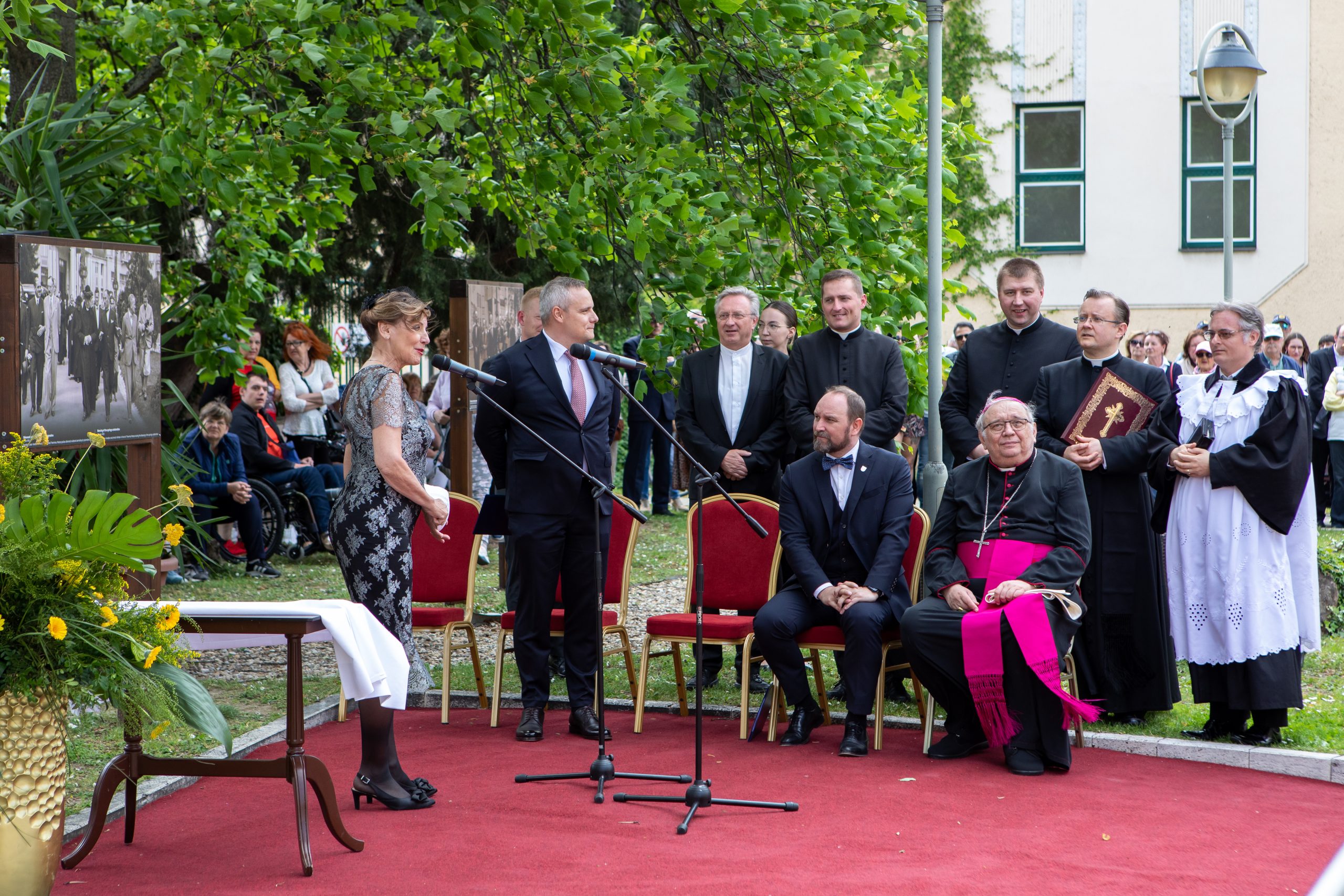 Z predstaviteľov samosprávy prišiel poďakovať za dar liečivých vôd župan Viskupič. Primátor Piešťan Peter Jančovič v rovnakom čase ako sa konalo požehnanie prameňov v centre mesta vítal účastníkov stavania mája. Medzi hosťami boli tiež predstavitelia rodiny Winterovcov. Podujatie moderovala Alena Heribanová.