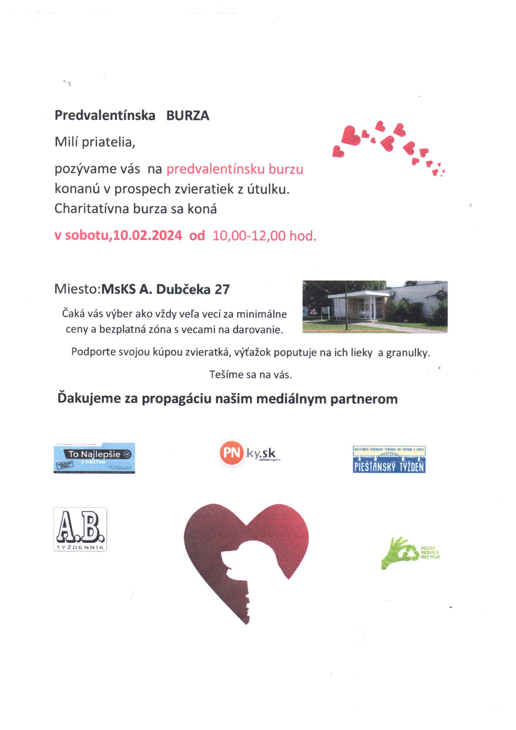 Predvalentínska burza na podporu Piešťanského útulku