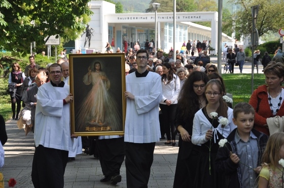 Procesia pri príležitosti sviatku Božieho milosrdenstva sa uskutoční v Piešťanoch v nedeľu 12. apríla o 14:30 h. Sprievod začína pri kúpeľnej kaplnke pri Kolonádovom moste a prejde cez centrum Piešťan do kostola sv. Cyrila a Metoda. Tam o 15:00 h začne benefičný koncert zboru Dona Bosca na podporu projektu Domu pokoja v Lúke pri Piešťanoch. Organizátori tejto slávnosti vyzývajú k modlitbe za pokoj vo svoje, aby pominuli vojny a násilnosti, ktoré sa dejú.