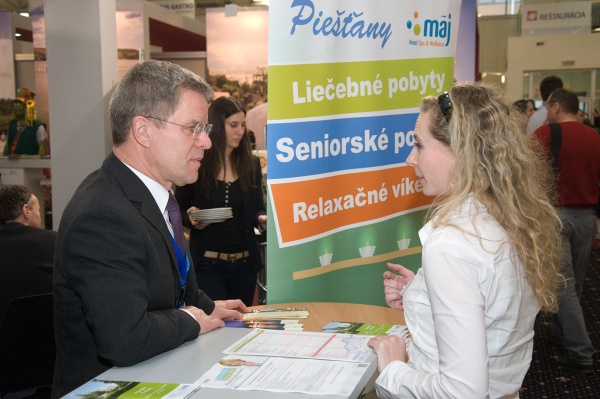 Piešťanský stánok má podobný koncept ako v minulých rokoch – pri jednotlivých pultoch ponúkajú zúčastnené subjekty svoje propagačné materiály a komunikujú s potenciálnymi zákazníkmi. Záujem je najmä o mapy, ponuky akciových pobytov a kúpeľné oblátky.