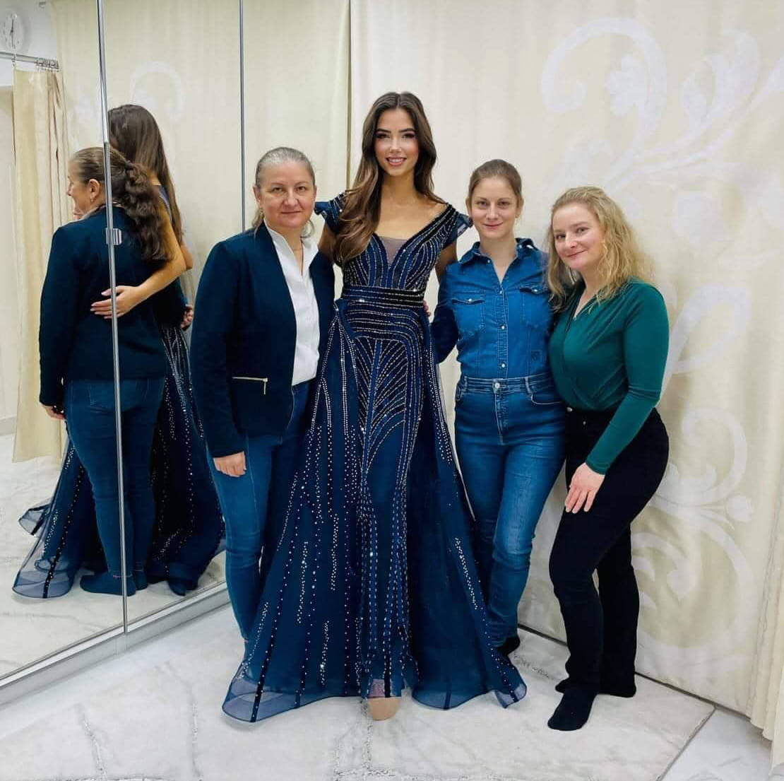 „Začali sme spolu vyberať rôzne modely a narazili sme na problém – vo všetkých bola krásna a nevedela si vybrať. Pri jednom sa spoločná dilema vyriešila sama – rozhodovali sme sa medzi smaragdovo-zelenými a tmavomodrými, no zelené už boli objednané na víkend, kedy ich potrebovala, takže vyhrali tmavomodré. Ďalší model si naša Miss Universe vybrala v bordovej farbe – opäť sme porovnávali, ktoré z dvoch strihovo veľmi podobných šiat budú na túto príležitosť lepšie a vyhrala neopozeraná krása – medzi hlbokým výstrihom v tvare V a zahaleným dekoltom so stojačikom, sme spoločne napokon vybrali šaty so stojačikom. Karolínka v nich bola o štipku výraznejšia a veríme, že jej prinesú úspech,“ hovorí Ľubica Dóczyová.