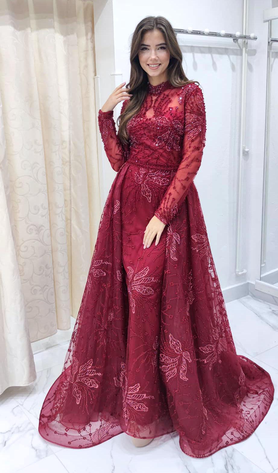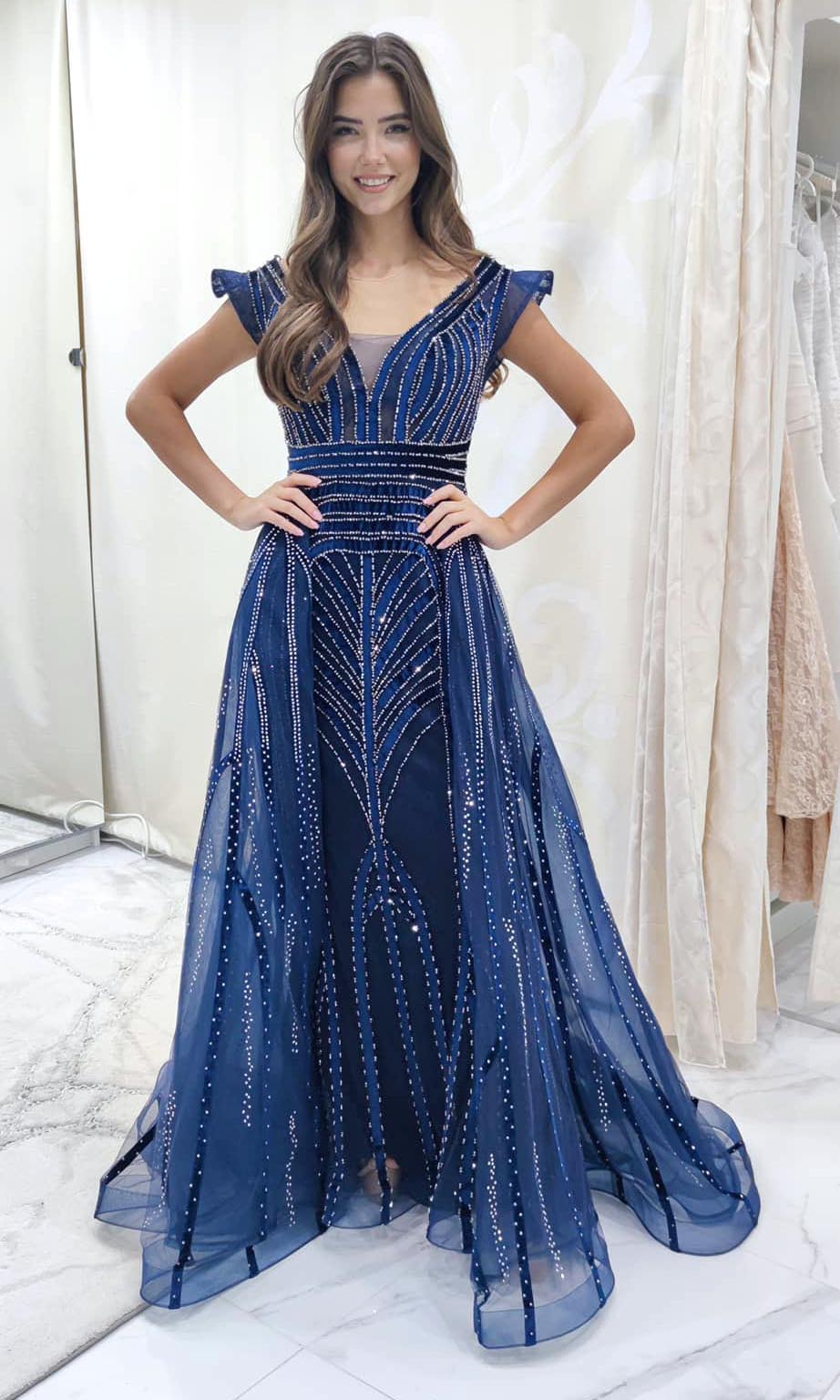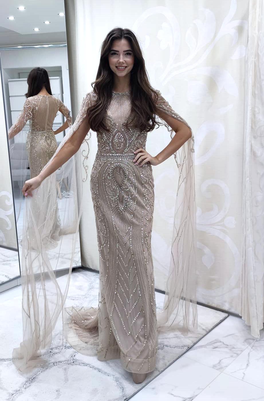 Posledným modelom, do ktorého sa sama Karolína zamilovala na prvý pohľad boli nádherné bohato vyšívané zlaté šaty úzkeho strihu s dlhými padavými „rukávmi“. Vyzerá v nich ako skutočná bohyňa. „Pôvodne si chcela od nás požičať len dvoje šaty, no pri toľkých krásnych šatách napokon odišla s tromi modelmi. Držíme jej palce a želáme veľa šťastia,“ dodáva majiteľka Svadobného salónu ľubica.