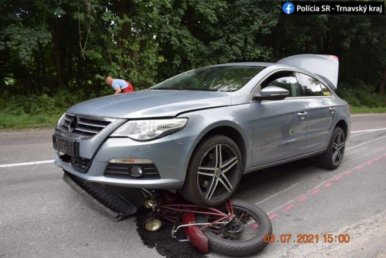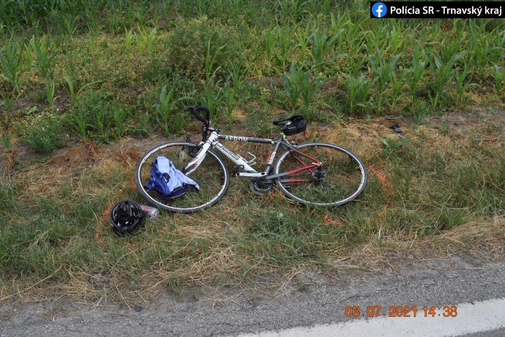 Na ceste medzi Trnavou a obcou Špačince zachytil 47 ročný vodič auta Citroën Berlingo spätným zrkadlom 30 ročnú cyklistku. Pri páde sa zranila a po prevoze záchranármi ju ošetrili v trnavskej nemocnici.