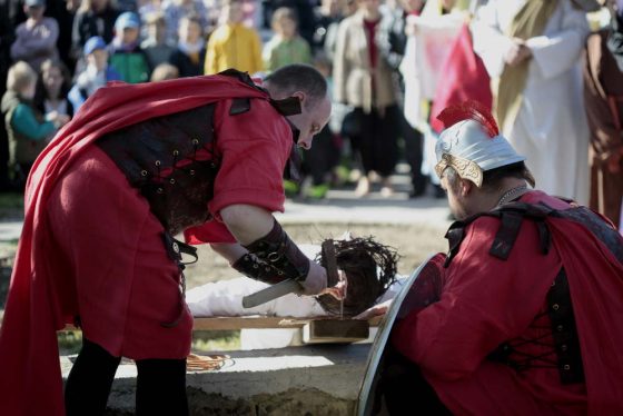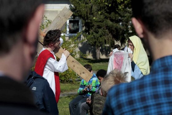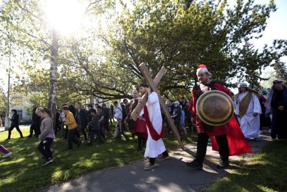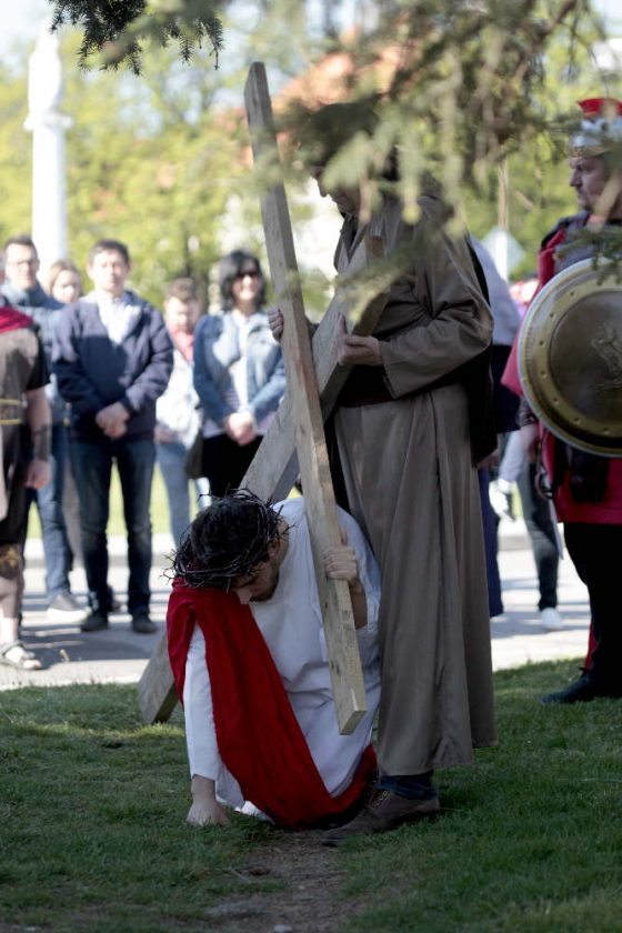 Hraná krížová cesta sprítomnila štrnásť zastavení krížovej cesty. V zamysleniach veriaci rozjímali nad jednotlivými udalosťami a ich prenesením do ich súčasného života. Pripravilu ju dobrovoľníci z farnosti sv. Štefana, ktorých cieľom bolo sprostredkovať účastníkom hlboký duchovný zážitok a pomôcť pochopiť význam Ježišovej obety ako aj vyzdvihnúť hodnoty kresťanstva.