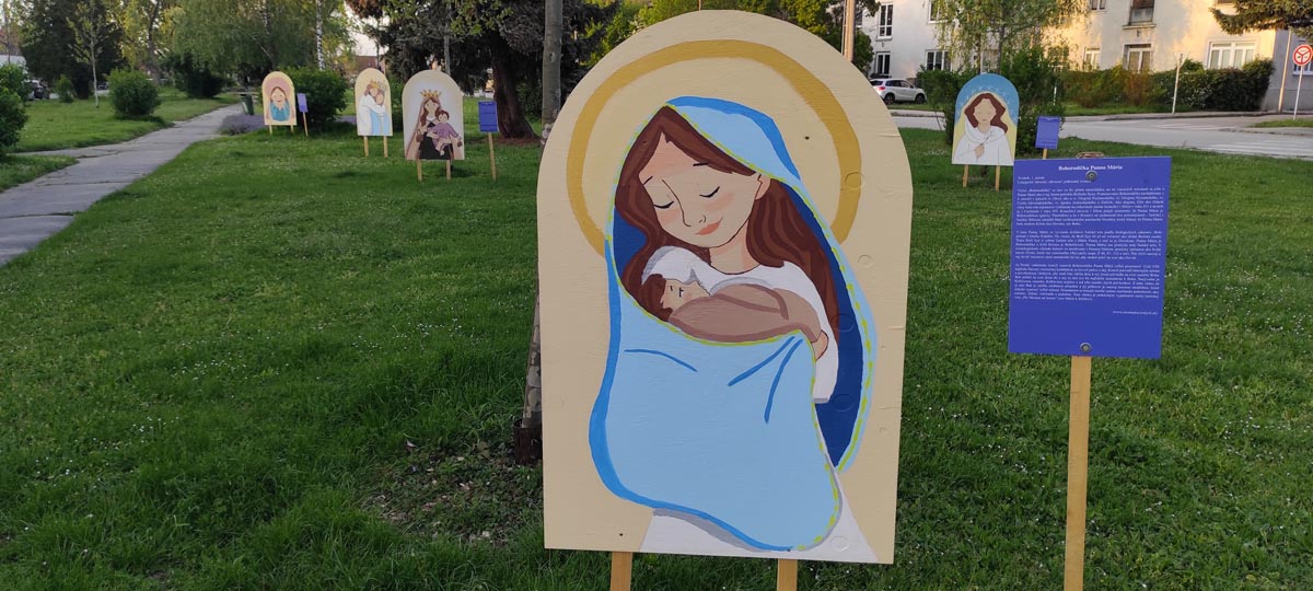 Materské centrum Úsmev pozýva nielen rodiny s deťmi na prechádzku po parku pri kostole sv. Štefana, kde sú umiestnené obrazy sviatkov Panny Márie.
