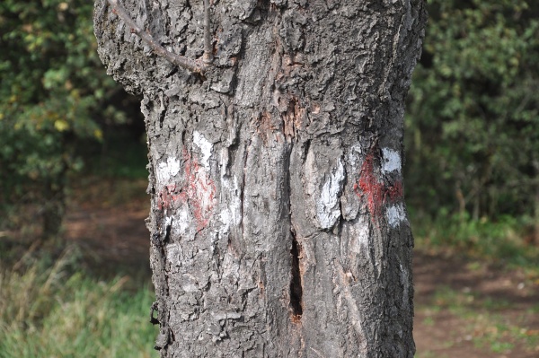 Bez veľkej obchádzky plota a opätovného hľadania červenej značky sa turisti nedostanú ani na Ovčiu skalu. Tá je podľa rozcestníka z Havrana vzdialená 3:15 h.