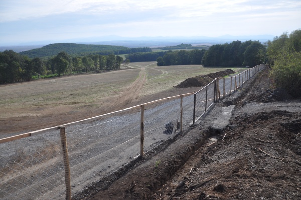 Na problém nás upozornil čitateľ, ktorý si všimol, že na oplotenom pozemku prebiehajú aj stavebné práce. Plot zatiaľ nie je dokončený, okolo neho však už stojí spevnená štrková cesta a pod ňou na niektorých miestach odvodňovacie kanály. Na pozemku sú tiež betónové základy a prebehli tam úpravy terénu.