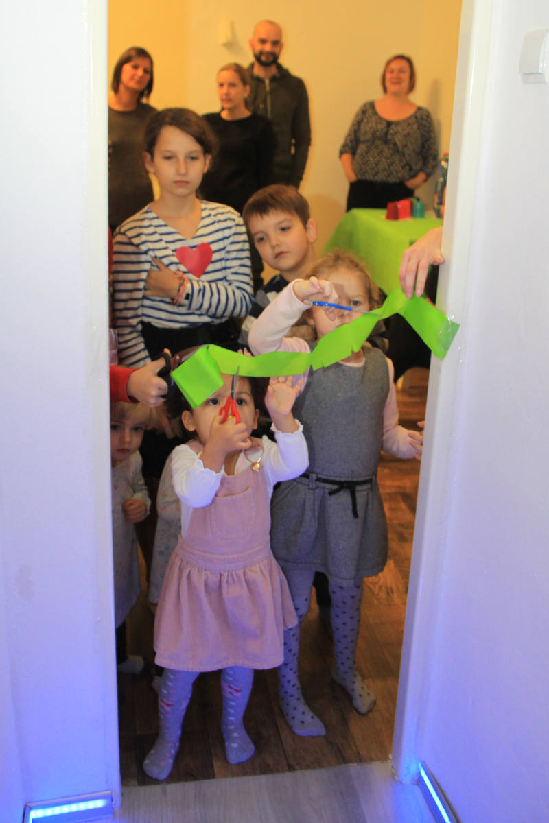 Materské centrum Úsmev pripravilo pre deti prekvapenie vo forme spustenia projektu „Multisenzorickej miestnosti pre deti v rannom veku“. Deti plné očakávania spoločne prestrihávali pásku do multisenzorickej miestnosti.