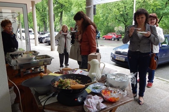 Variť chutne a zdravo nie je totiž také ťažké, ako by sa na prvý pohľad mohlo zdať. Dozvedeli sa, ako sa niektoré potraviny varia a spracovávajú, aby si zachovali vitamíny a ďalšie výživné látky. Návštevníci s radosťou ochutnávali napríklad pšeničný bulgur v rajčine, šošovicu v cukine, pšenový koláč, alebo pohánkové rizoto. Dozvedeli sa, prečo sú tieto jedlá prospešné, čo obsahujú, ale najmä ako ich môžu zdravo a chutne pripraviť. Napriek nepriaznivému počasiu ich prišlo neúrekom.
