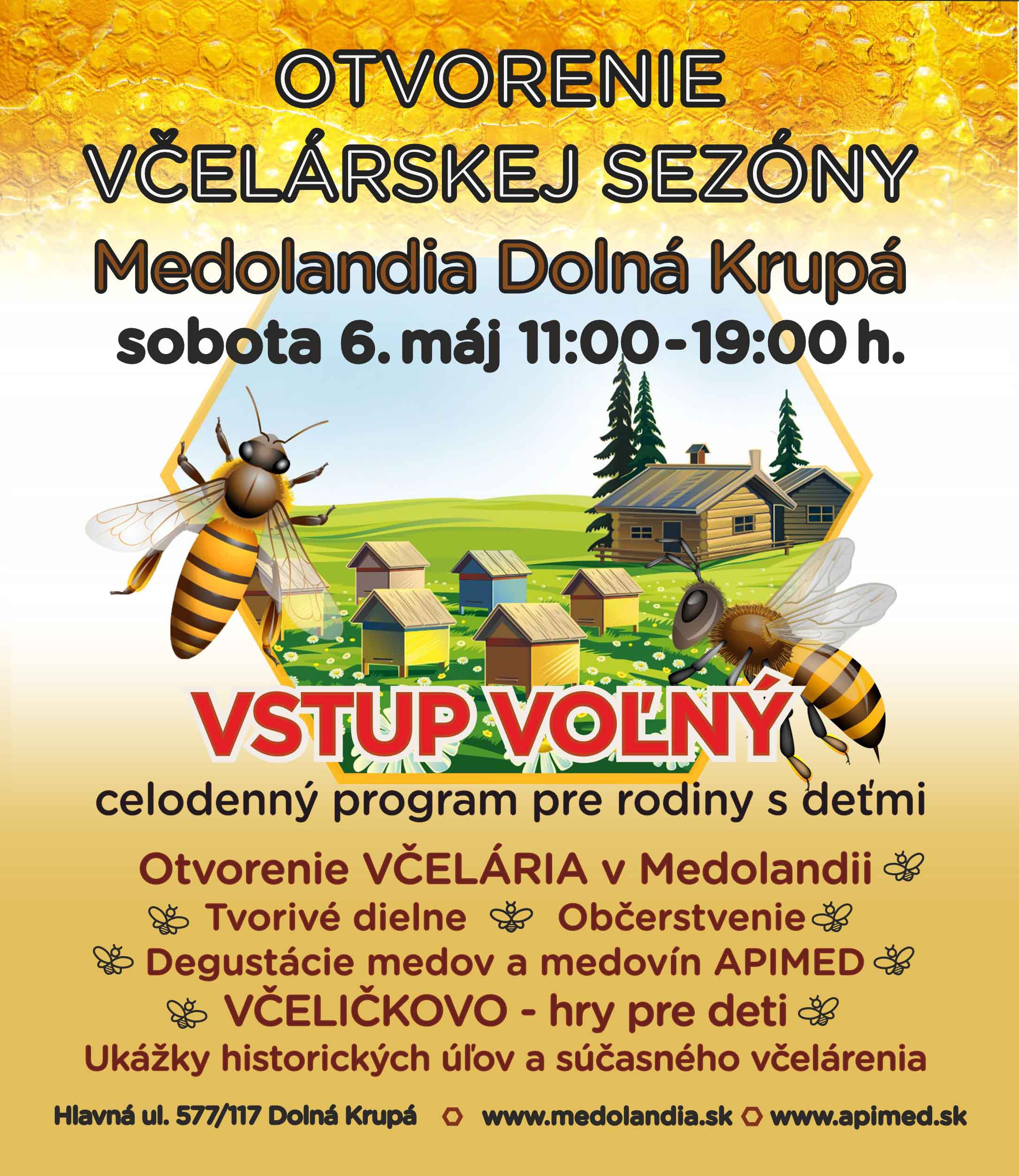 Na Otvorenie včelárskej sezóny, ktoré sa bude konať od 11:00 do 19:00 h pozýva Medolandia. Tešiť sa môžete na celodenný program pre rodiny s deťmi.