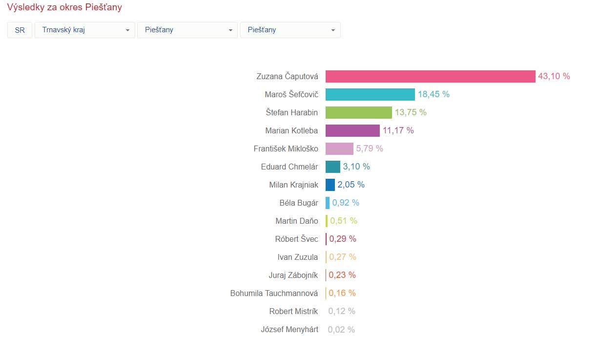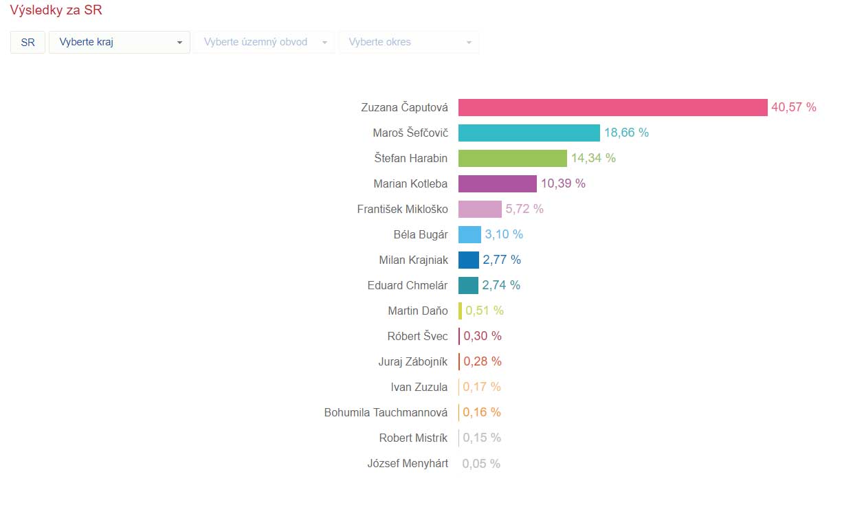 Voľba prezidenta 2019 – 1. kolo – výsledky graficky