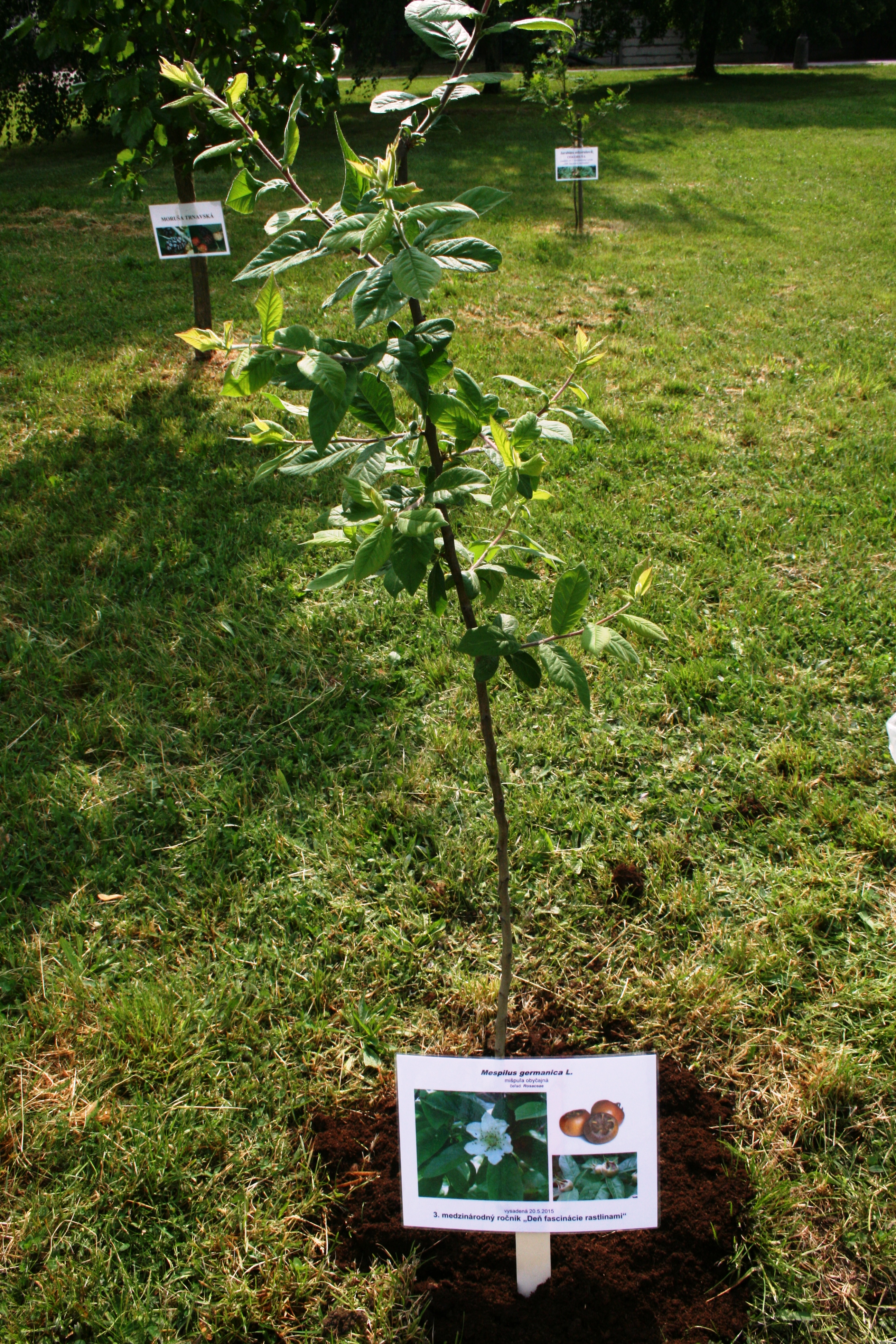 Po úvodných slovách riaditeľa Pavla Hauptovogela, zástupkyne NPPC Dany Peškovičovej a prednostky Mestského úradu v Piešťanoch Dášy Rehákovej, boli hostia a prví návštevníci svedkami zasadenia netradičného stromčeka mišpule. Ako povedala koordinátorka realizačného tímu Katarína Bojňanská, táto ovocná drevina pochádza z Ázie, a hoci voľakedy bola na Slovensku úplne bežná, dnes sa skoro nevyskytuje a patrí do kolekcie netradičných ovocných drevín v rámci národného bohatstva: „Zvolili sme mišpuľu, lebo je to skoro už zabudnutý strom. Ide o ovocie, ktoré sa dá jesť neskoro na jeseň na také spestrenie. Zaujímavé je, že dlho zostáva nezrelé, uhniličí, a až potom sa konzumuje. Plody sú veľmi zdravé. Ľudia mali aj v neskorej jeseni prísun vitamínov.“ Na Slovensku mišpuľa ešte občas vzplanieva v oblastiach, kde sa vyskytovala, ale dá sa aj kúpiť u drobných pestovateľov. Môže byť opätovným spestrením našich záhrad, pretože aj veľmi pekne kvitne.