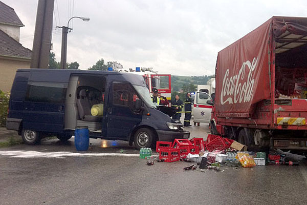Aktualizované 4. júna o 9.40 h o vyjadrenie krajskej policajnej hovorkyne Martiny Kredatusovej: „K dopravnej nehode došlo 1. júna asi o 7.20h v smere od Piešťan na Moravany nad Váhom. 28 ročný vodič Fordu Tranzit z Topoľčian pravdepodobne neprispôsobil rýchlosť jazdy svojim schopnostiam a stavu a povahe vozovky. V ostrej pravotočivej zákrute prešiel do protismeru, kde sa zrazil s oproti idúcim autom Iveco Turbo. Vodič Fordu sa pri nehode ľahko zranil, jeho dvaja spolujazdci neutrpeli žiadne zranenia. Bez zranení obišiel aj vodič nákladného auta Iveco. Dychová skúška na alkohol bola u oboch vodičov negatívna. Polícia príčiny nehody vyšetruje.“