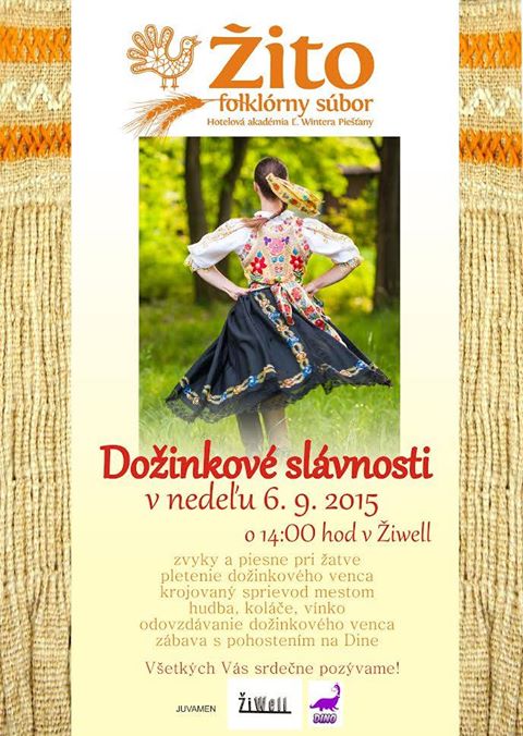 Tradíciu Dožinkových slávností oprášil Folklórny súbor ŽITO pri Hotelovej akadémii Ľ. Wintera v Piešťanoch v minulom roku a medzi návštevníkmi mala veľký úspech. Tohtoročné dožinky sa budú konať už v prvú septembrovú nedeľu 6. 9. a začnú opäť pri komunitnom centre ŽiWell od 14-tej hodiny popoludní.